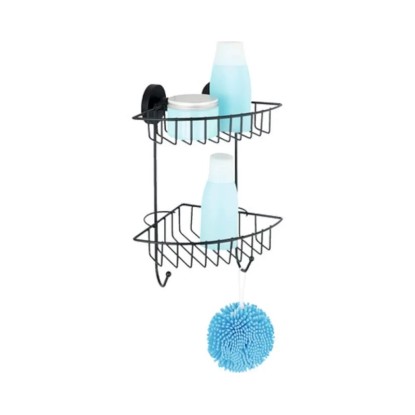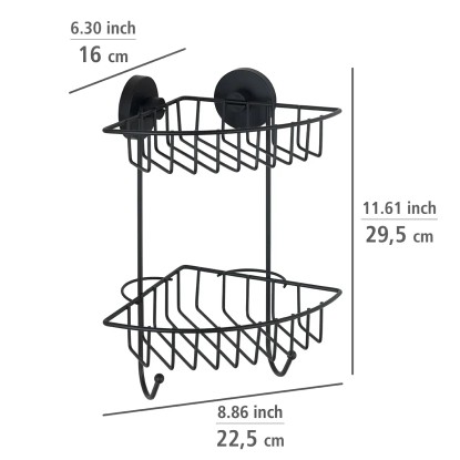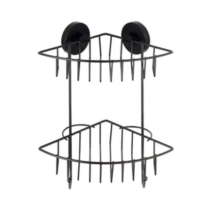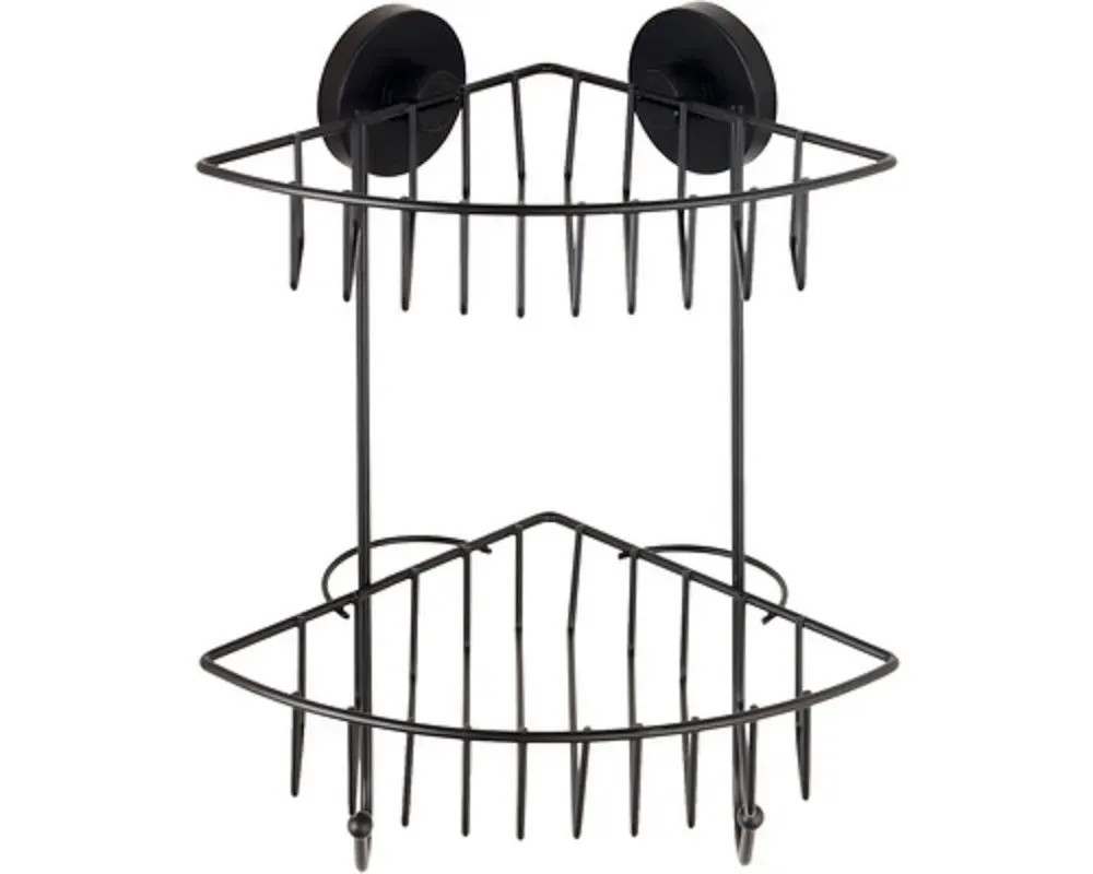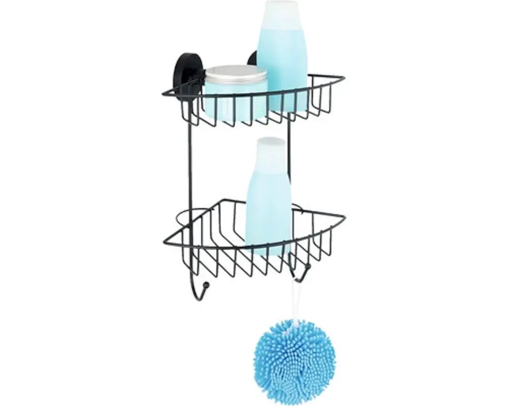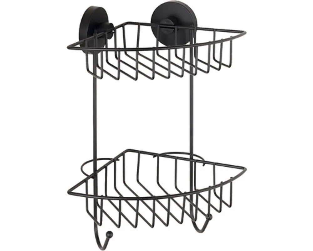 Wenko Rohová 2-patrová nástěnná police Vacuum-Loc Bari černá 22,5 x 29,5 x 16 cm