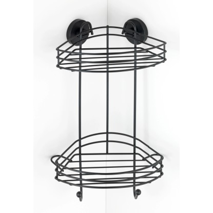 Wenko Rohová 2-patrová nástěnná police Vacuum-Loc Bari černá 24 x 43 x 21 cm