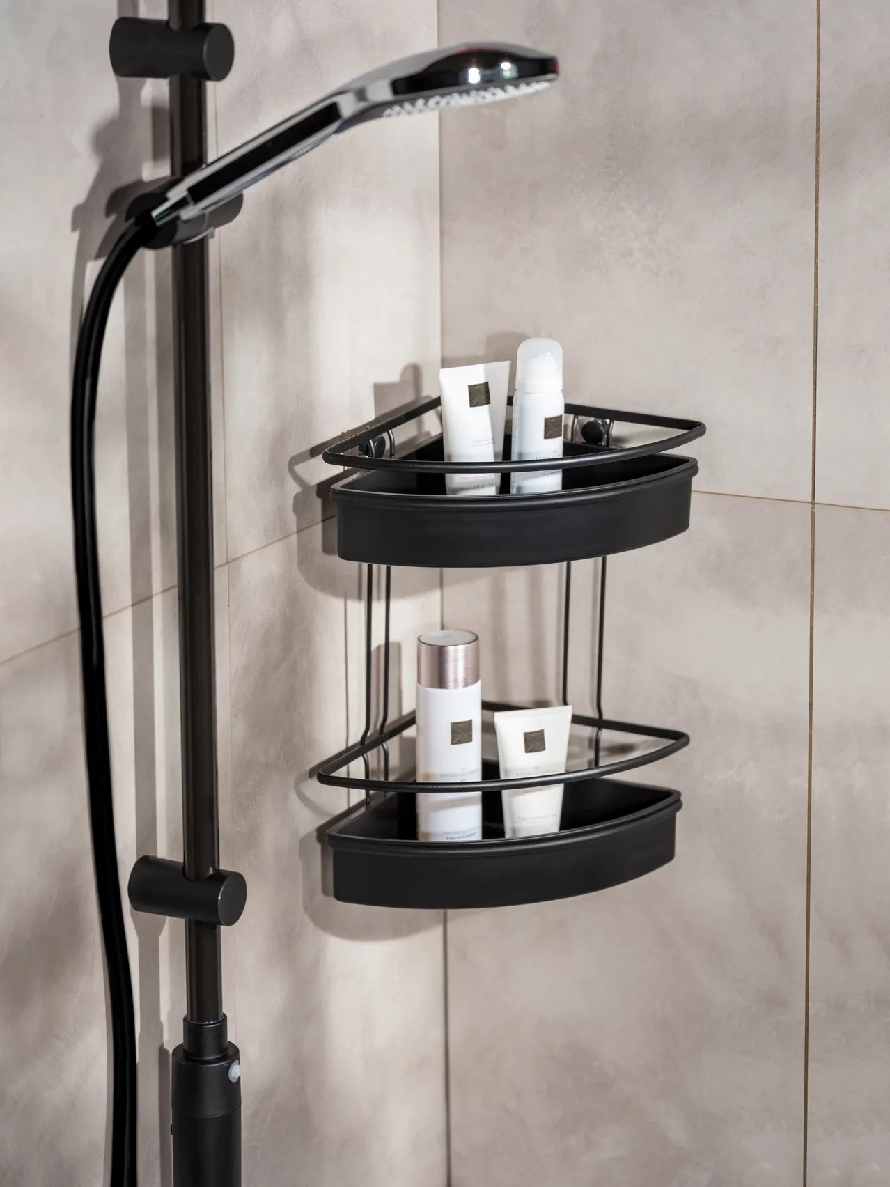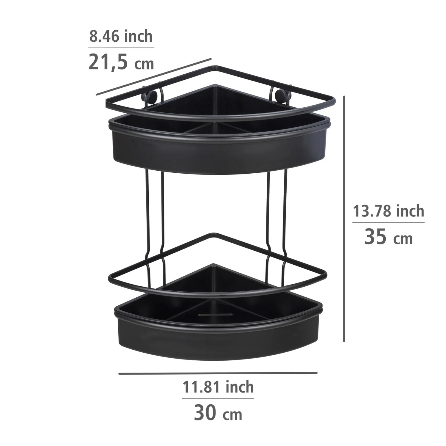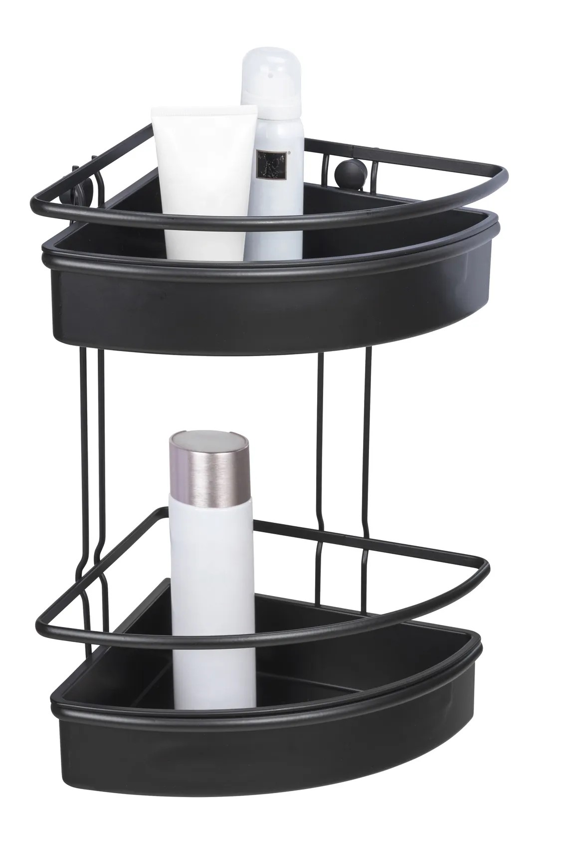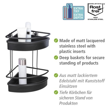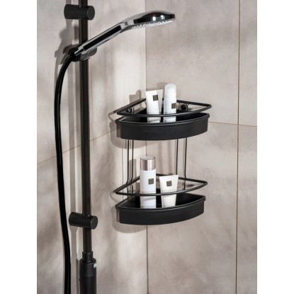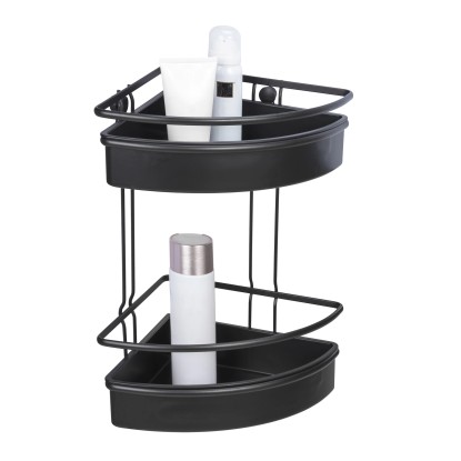 Wenko Rohová koupelnová police Molinella 2patrová, černá, 21,5 x 30 x 35 cm