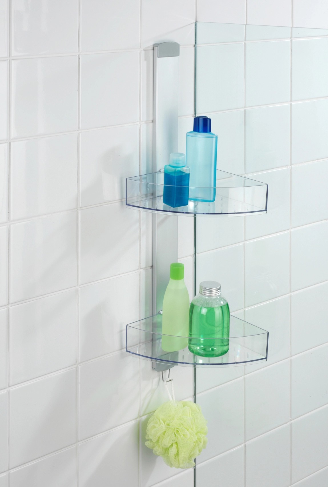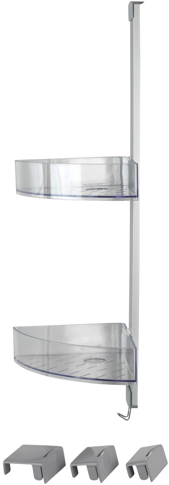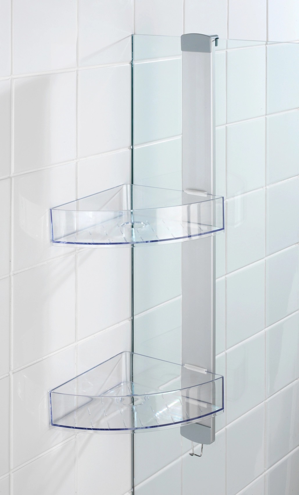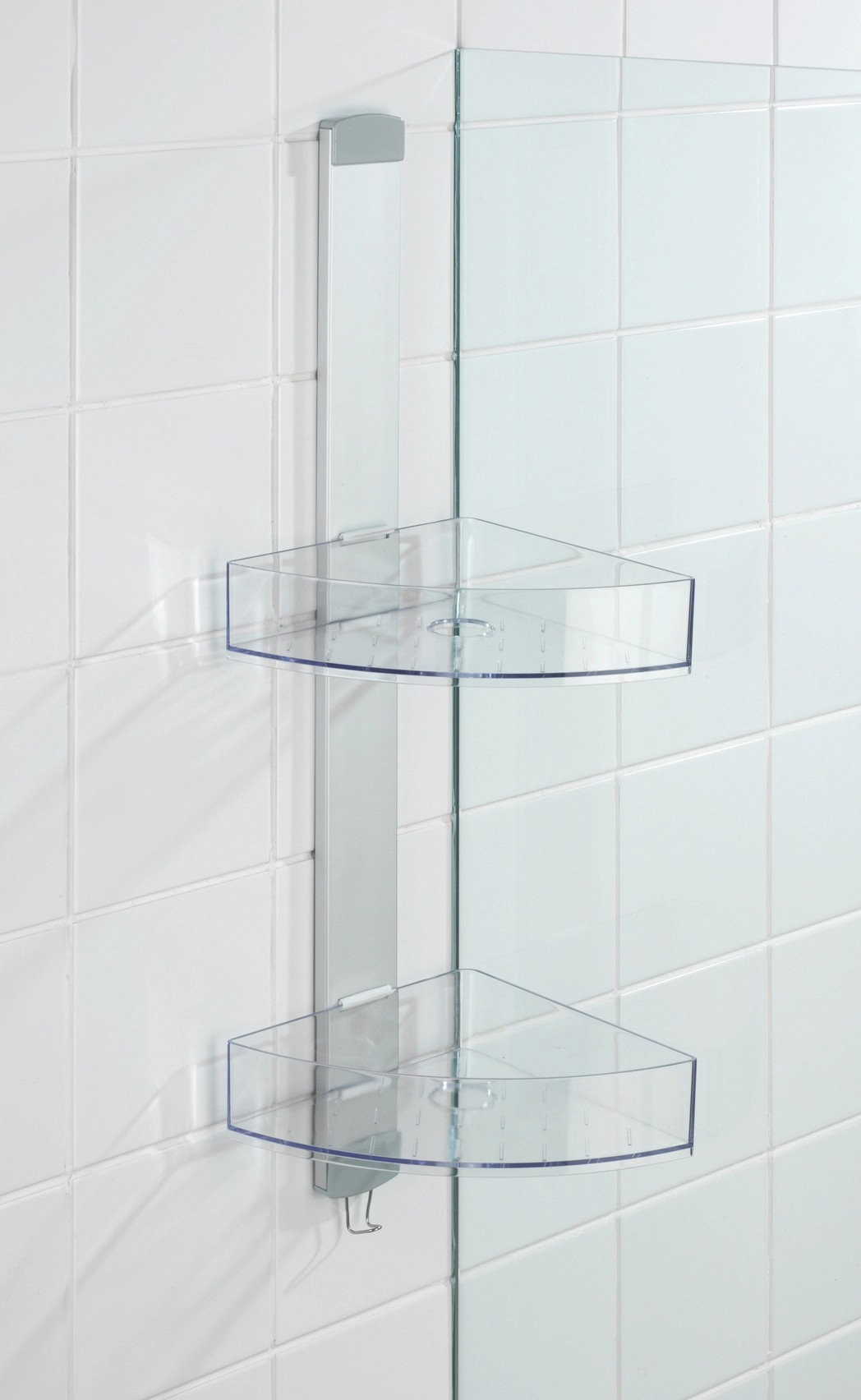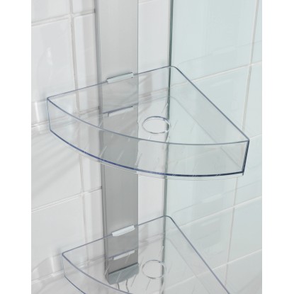 Se dvěma komfortními odkládacími prostory nabízí mnoho místa pro vaše sprchovací potřeby drží sprchový gel, šampón, mýdlo nebo houbu vždy na dosah. Stranově posuvné odkládací prostory mají po jednom otvoru pro lahve se šampónem uložené dnem vzhůru. Otvory současně slouží k odtoku vody. Na integrovaný háček z nerezové oceli lze navíc prostorově úsporně zavěsit žínky, houby nebo kartáče. Pro účely montáže je součástí dodávky adaptér na dveře s falcem 11 mm a také šrouby a hmoždinky pro montáž na stěnu.
