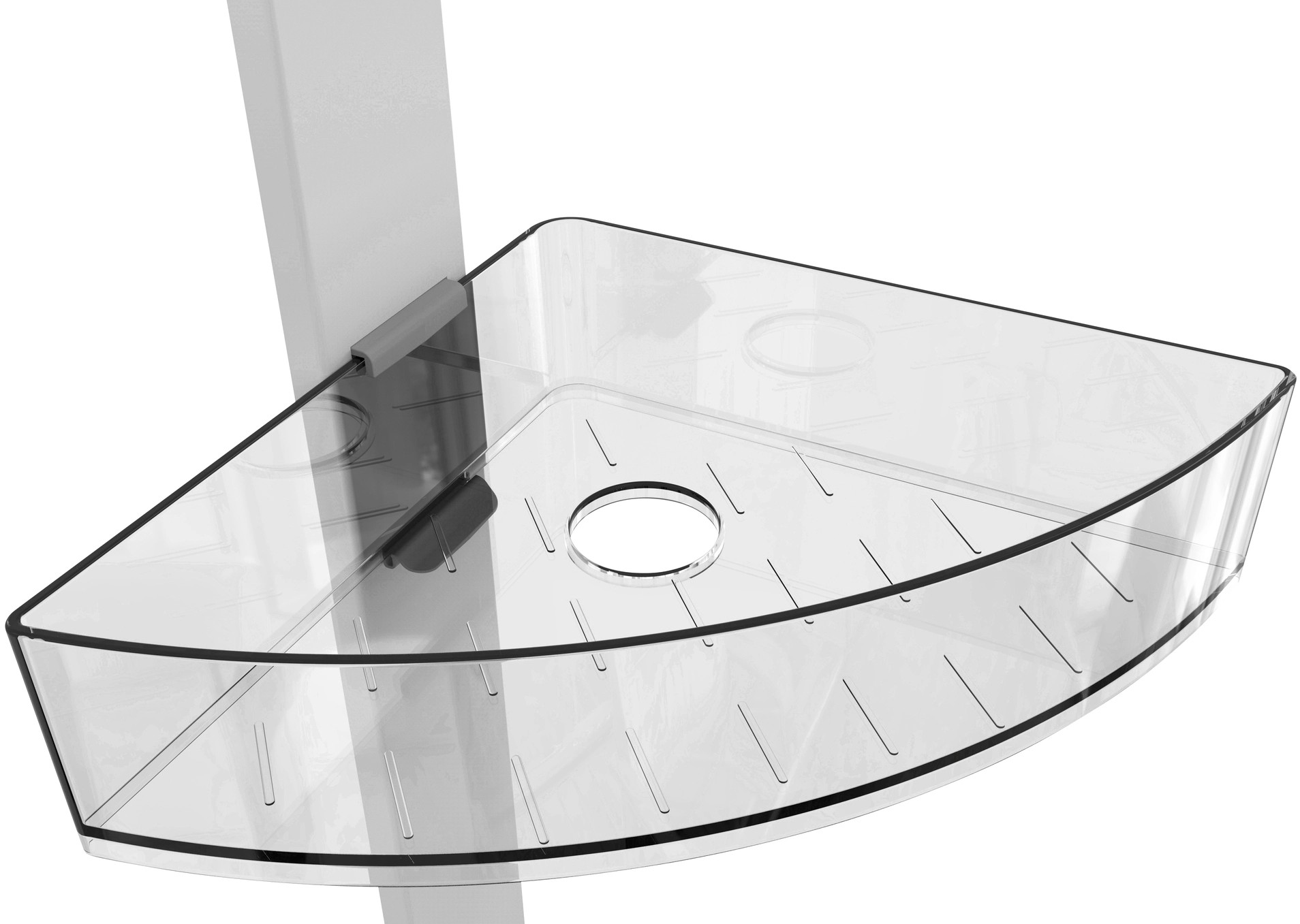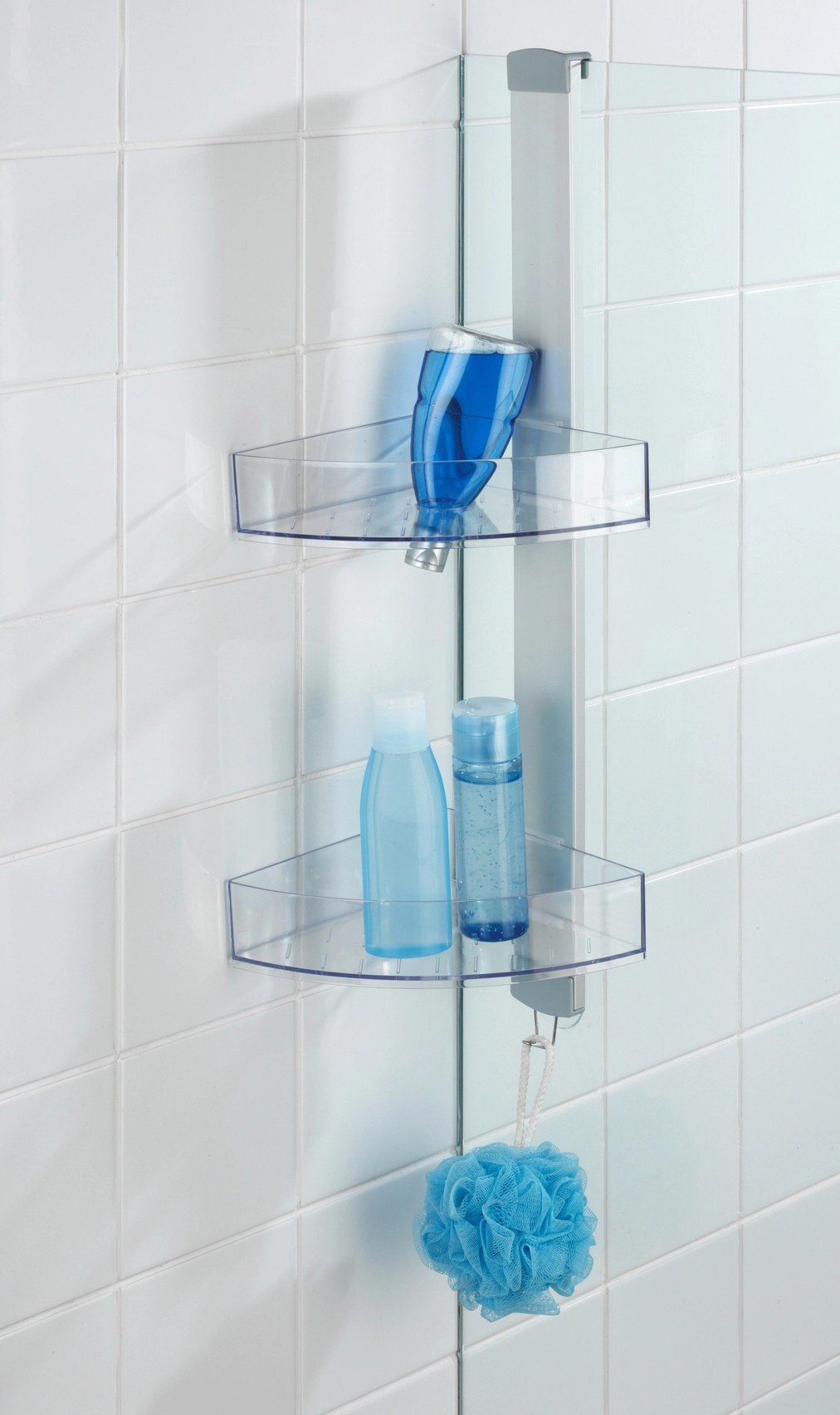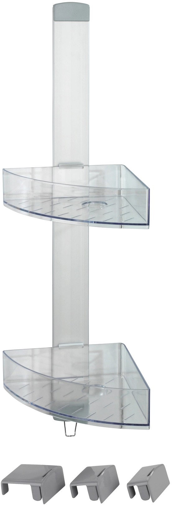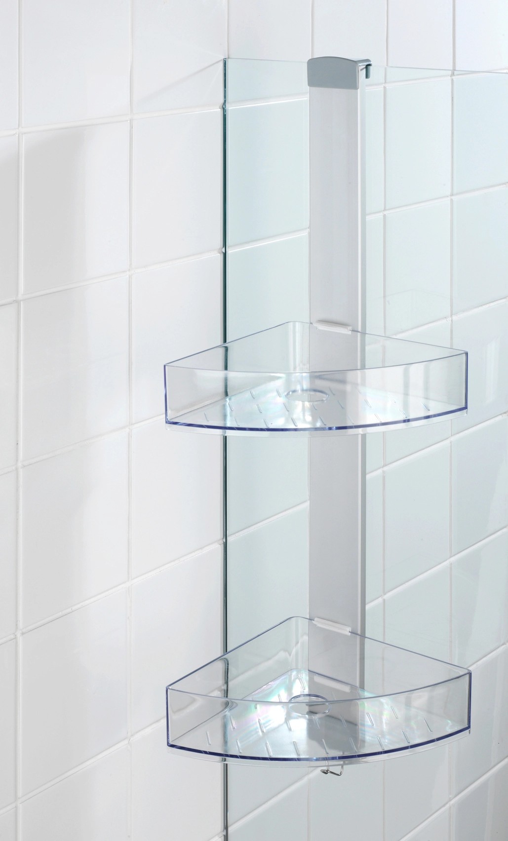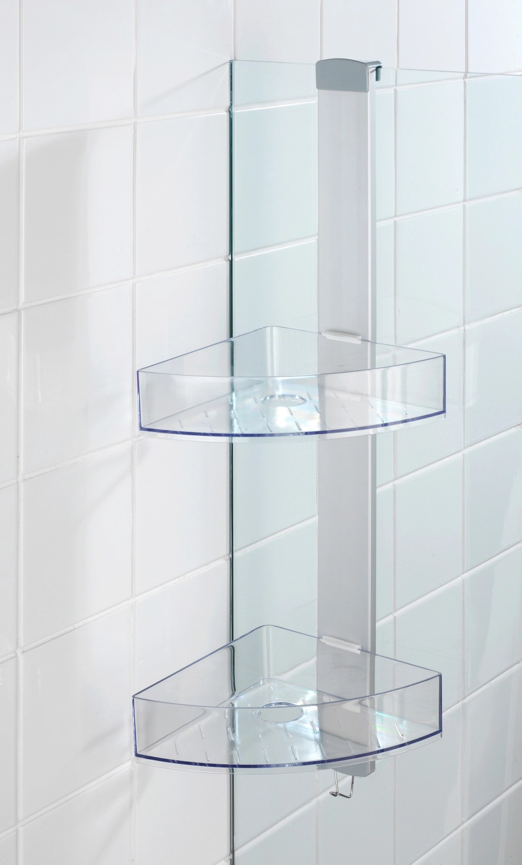 Se dvěma komfortními odkládacími prostory nabízí mnoho místa pro vaše sprchovací potřeby drží sprchový gel, šampón, mýdlo nebo houbu vždy na dosah. Stranově posuvné odkládací prostory mají po jednom otvoru pro lahve se šampónem uložené dnem vzhůru. Otvory současně slouží k odtoku vody. Na integrovaný háček z nerezové oceli lze navíc prostorově úsporně zavěsit žínky, houby nebo kartáče. Pro účely montáže je součástí dodávky adaptér na dveře s falcem 11 mm a také šrouby a hmoždinky pro montáž na stěnu.
