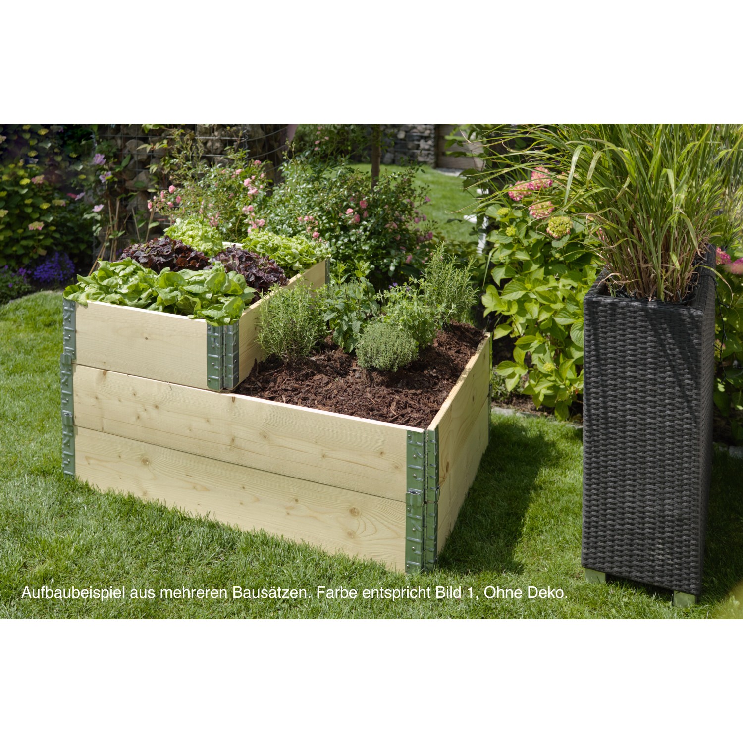 Vyvýšený záhon ze smrkového dřeva je dekorativní záhon pro venkovní použití vyrobený v Evropě. Záhon se snadno sestavuje, vypadá vkusně a přinese Vám spoustu radosti. Můžete tak založit hezký květinový záhon nebo jej použít jako dekorativní záhon s bylinami. Závěsy jsou vyrobeny z pozinkované oceli. Jednoduchá montáž za pouhých cca 5 minut. Záhon lze snadno vzájemně spojit s dalšími stavebnicemi, které jsou k dostání samostatně. Buď je na sebe nastohujete, takže vyvýšený záhon dosáhne požadované výšky, nebo je lze rozšířit i na délku a šířku. Tato varianta je natřena lazurou, aby byla zajištěna odolnost vůči povětrnostním vlivům.
