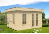 Stěny zahradního domku jsou vyrobené z 28 mm tlusté kulatiny. Podlaha je vyrobena z 19 mm tlustých desek pokládaných na impregnovaný základ. Tloušťka střešního bednění činí 19 mm. Celý domek je opatřen zásuvným a šroubovacím systémem pro snadnější montáž. Balení obsahuje dostatečné množství střešní lepenky k pokrytí na 1 vrstvu. Střecha štítu vpředu přesahuje o 40 cm na ostatních stranách o 20 cm.