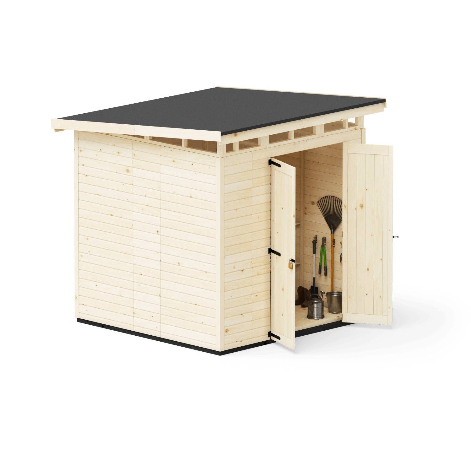 Dřevěné zahradní domky na nářadí Upyard z řady Strongbox nabízí robustní a stylové řešení pro uložení vašeho zahradního nářadí a dalších věcí. S impregnovanými základy a plastovou střechou odolnou proti povětrnostním vlivům budete ideálně vybaveni do každého počasí.