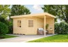 Zahradní domek je vyroben z neošetřeného dřeva se zásuvným a šroubovacím systémem. Díky přírodnímu povrchu zůstává zachován přírodní vzhled s dřevěnou kresbou. Pro ochranu před povětrnostními vlivy lze povrch individuálně natřít lakem nebo lazurou. Pro montáž zahradního altánu nemusíte být profesionálním řemeslníkem. Díky praktickému zásuvnému šroubovacímu systému lze bez problémů provést montáž a jednotlivé díly je možno snadno spojit. Dřevěný zahradní domek má robustní konstrukci s tloušťkou stěny 28 mm. Maximální zatížení ploché střechy sněhem činí 75 kg/m2. Výška hřebene činí 259 cm, což zajišťuje příjemnou volnost pohybu v interiéru. Díky speciálně tvarované střeše se kvalitní střešní pásy hodí zejména jako střešní krytina.