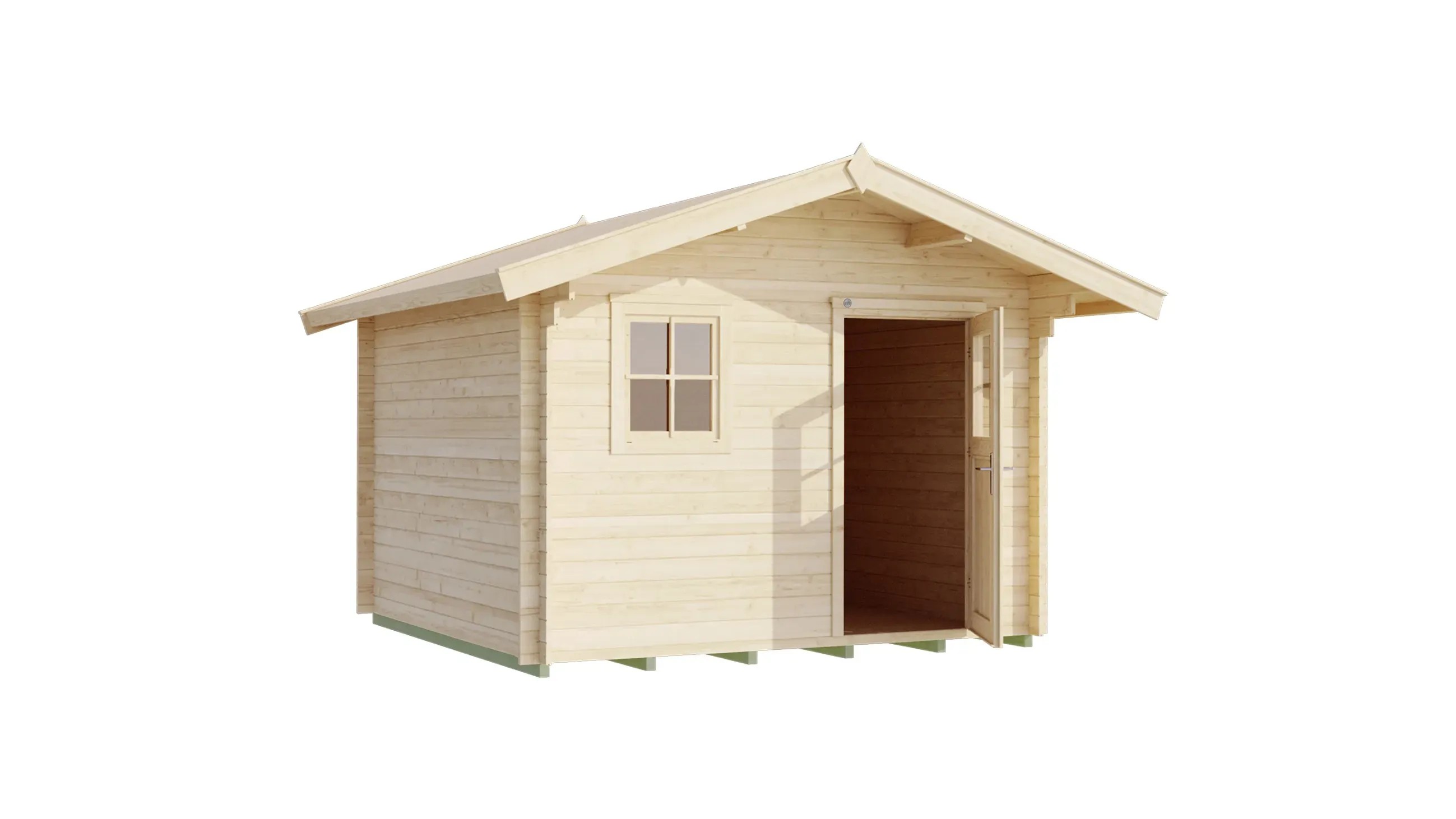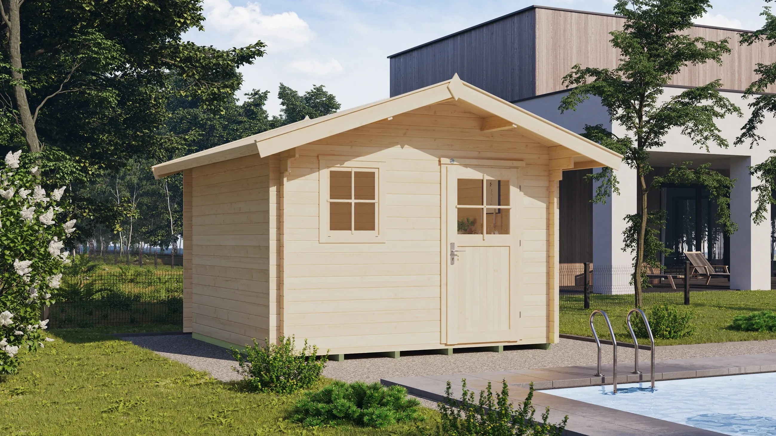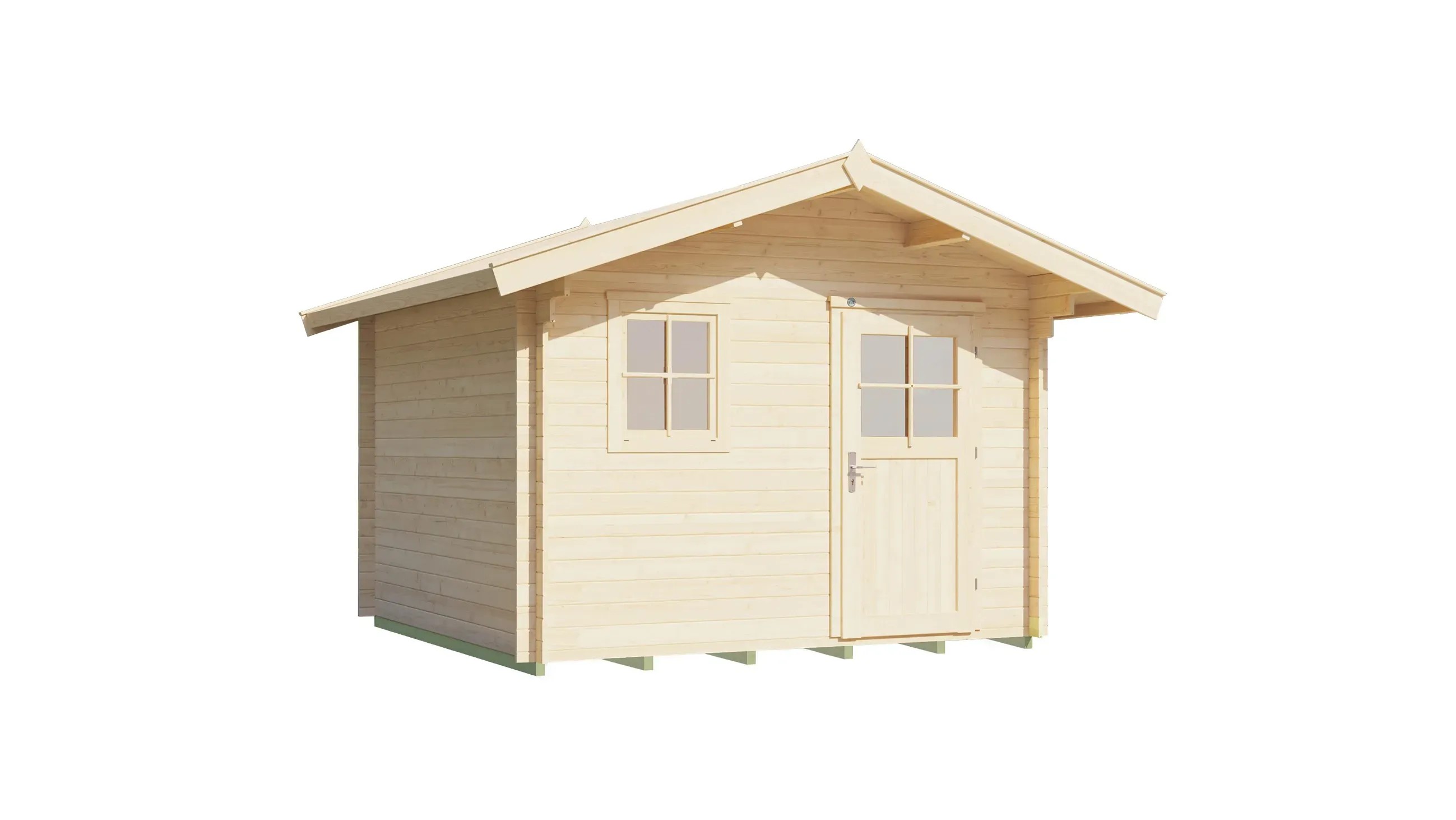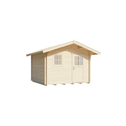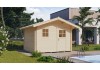 Zahradní domek je vyroben z neošetřeného dřeva systémem kolík a šroub. Díky přírodnímu povrchu je zachován přirozený vzhled s kresbou dřeva. Pro ochranu před povětrnostními vlivy by měl být povrch individuálně upraven lakem nebo lazurou. K montáži altánu nemusíte být profesionální řemeslník. Díky praktickému systému zástrčka-šroub lze bez problémů provést montáž a jednotlivé díly jednoduše spojit. Dřevěný zahradní domek má robustní konstrukci o tloušťce stěny 28 mm. Maximální sněhové zatížení šikmé střechy je 76 kg/m. Střešní krytina ve formě střešní lepenky je již součástí dodávky.