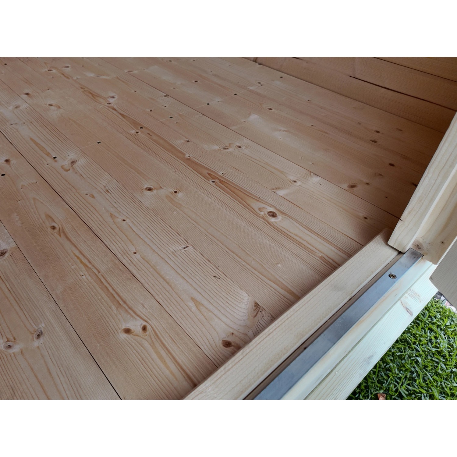 Zahradní domek je vyroben z lazurovaného dřeva srubové konstrukce. Díky lazuře zůstává zachován přírodní vzhled s kresbou dřeva a domek je chráněn před povětrnostními vlivy. Pro montáž zahradního domku nemusíte být profesionálním řemeslníkem. Díky praktickému zásuvnému šroubovacímu systému lze bez jednotlivé díly snadno spojit. Domek má robustní konstrukci se stěnami o tloušťce 28 mm. Maximální zatížení střechy sněhem činí 75 kg/m2. Výška hřebene činí 237 cm, proto je domek vhodný i pro vyšší osoby.