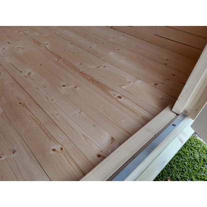 Zahradní domek je vyroben z lazurovaného dřeva srubové konstrukce. Díky lazuře zůstává zachován přírodní vzhled s kresbou dřeva a domek je chráněn před povětrnostními vlivy. Pro montáž zahradního domku nemusíte být profesionálním řemeslníkem. Díky praktickému zásuvnému šroubovacímu systému lze bez jednotlivé díly snadno spojit. Domek má robustní konstrukci se stěnami o tloušťce 28 mm. Maximální zatížení střechy sněhem činí 75 kg/m2. Výška hřebene činí 249 cm, proto je domek vhodný i pro vyšší osoby.