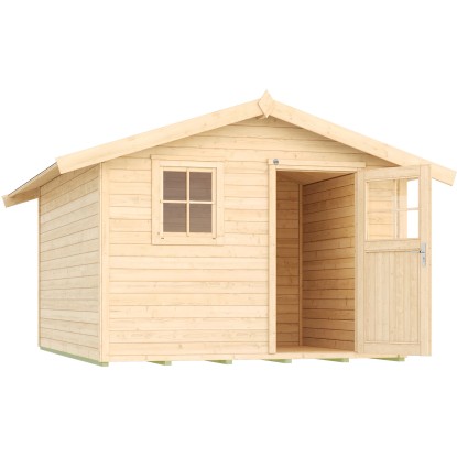 Dřevěný zahradní domek Weka 123 v klasickém vzhledu má půdorys 8,88 m2 a lze jej využít jako kůlnu na nářadí, zahradní altán nebo chatku. Vchod o rozměrech 172 x 81 cm umožňuje pohodlný vstup také s většími přístroji, zahradními potřebami, jízdními koly a zahradním nábytkem.