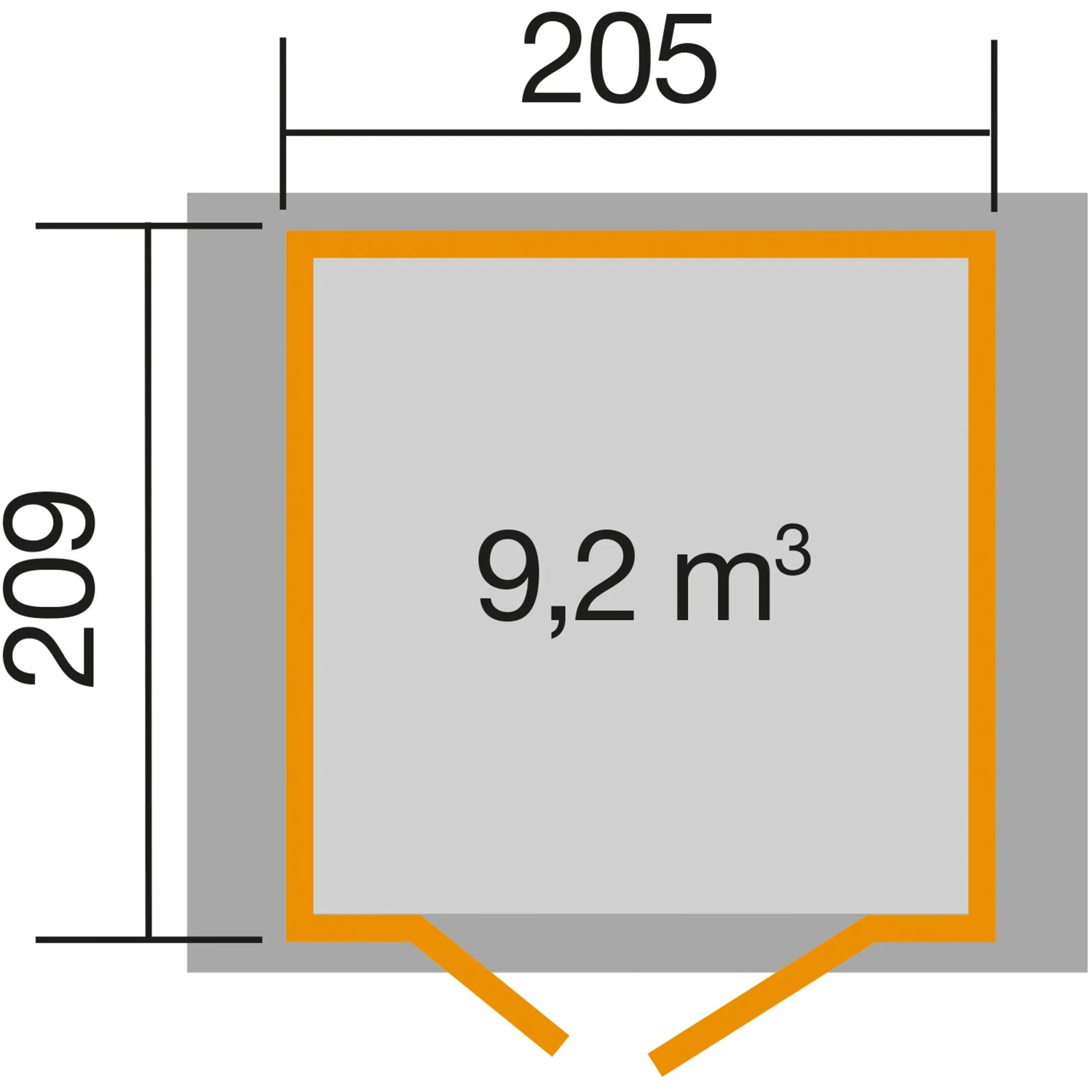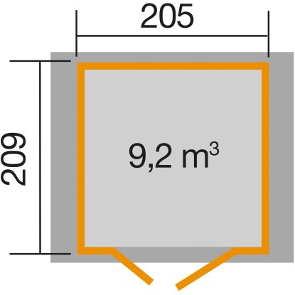Součástí sady jsou moderní dvoukřídlé dveře s kvalitní sadou klik, profilovým cylindrickým zámkem a 3 klíči. Střecha přesahuje z bočních stran o 27,5 cm, ze zadní strany o 12 cm a z přední strany o 12 cm. Vnitřní rozměry domku jsou 205 x 209 cm (4,28 m2). Výška bočních stěn je 196 cm.