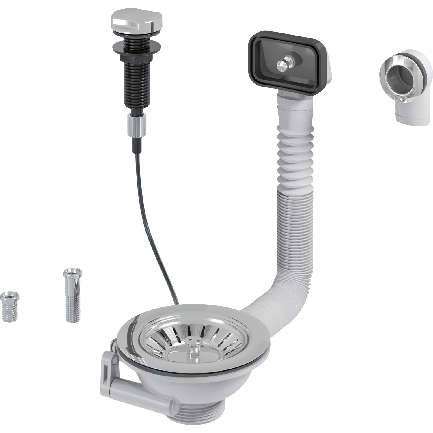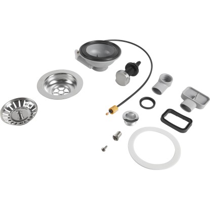 Sada je vyrobena z robustního plastu a pochromovaného sběrného síta, díky čemuž je odolná a snadno se čistí. Dřezová výpusť splňuje normu EN 274.
