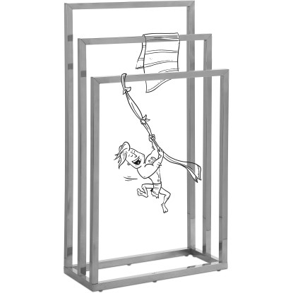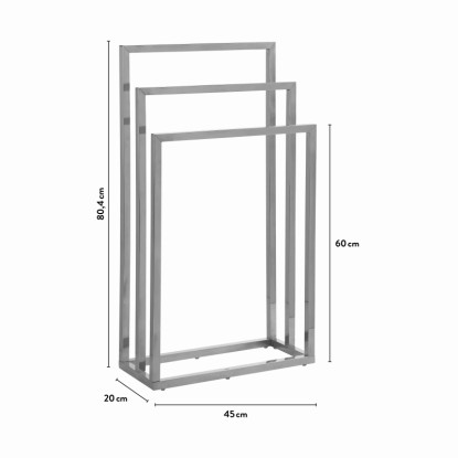 Stojan na ručníky se 3 rameny značky baliv se postará o pořádek v koupelně a navíc skvěle vypadá. Díky nadčasovému designu se hodí do každé moderní koupelny a můžete jej libovolně umístit a přenést. Díky výšce až 80,4 cm a šířce tyčí 45 cm můžete na stojan pověsit i velké ručníky a osušky. Robustní stojan je vyroben z chromované ušlechtilé oceli a můžete jej zatížit až 2,5 kg prádla. Držák na ručníky má rozměry 45 x 20 cm (Š x H) a najde místo i v malé koupelně.