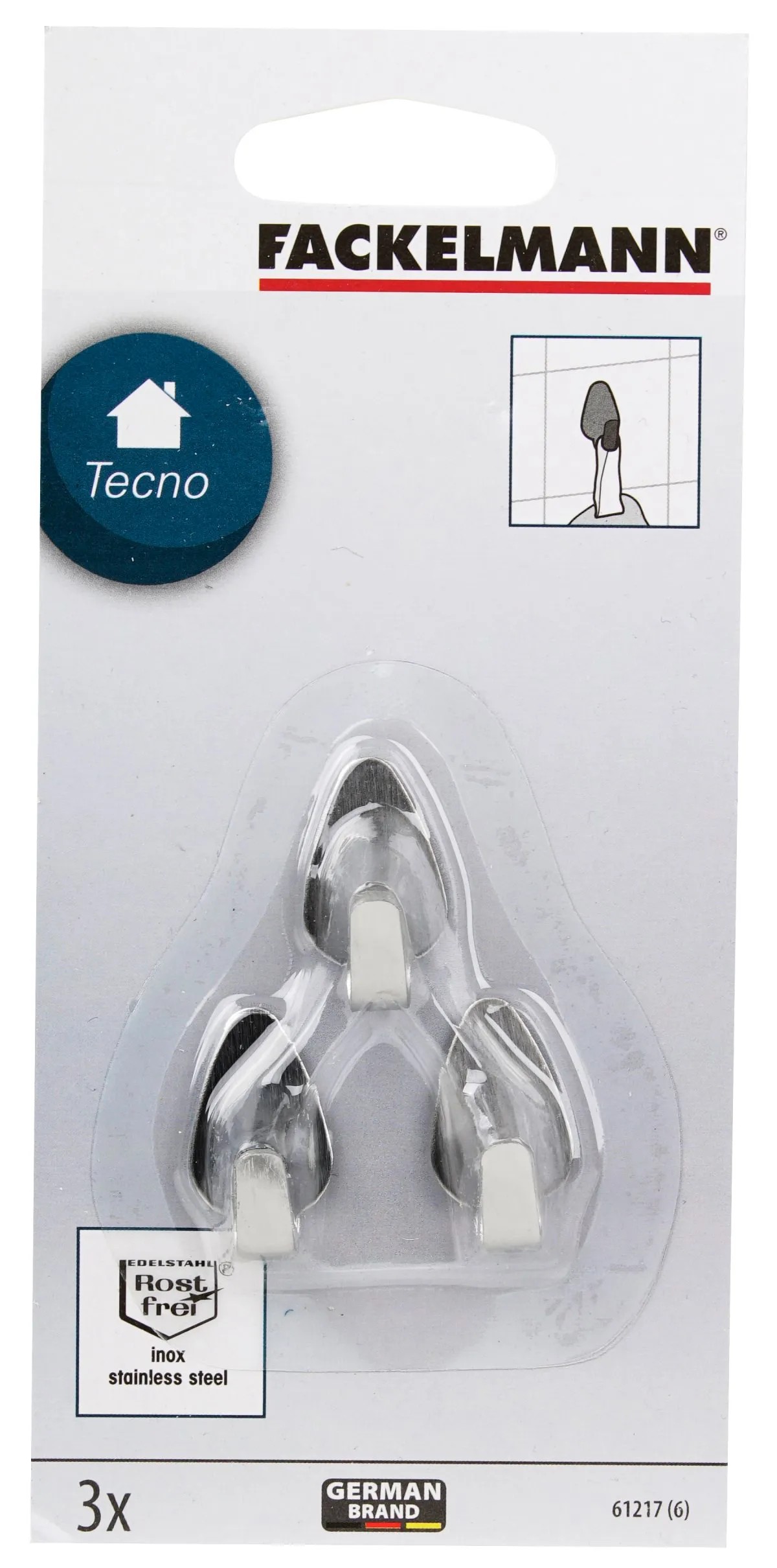 Samolepicí oválné háčky od Fackelmann jsou vyrobeny z nerezu. Balení obsahuje 3 kusy háčků. Mají rozměr (V x Š x H): 1,5 cm x 2 cm x 3 cm.