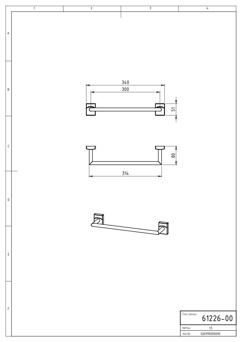 Držák ručníků ze série Metalia 12 v barvě chromu. Rozměr 340 x 51 x 80 m mm. Rozteč 300 mm.