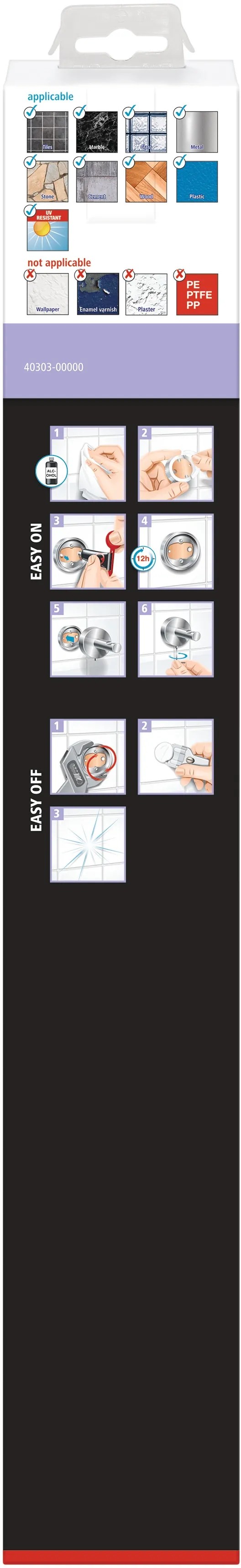 Protože se otočný držák na ručníky připevňuje pomocí lepidla, lze jej v koupelně umístit kdekoli a vyžaduje pouze 12hodinovou dobu zaschnutí, aby bylo dosaženo maximální pevnosti. Vrtání odpadá, stěny a obklady tedy zůstanou nepoškozené. Háček se snadno a beze stopy odstraní a znovu namontuje jinde s adaptérem BK20.