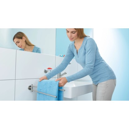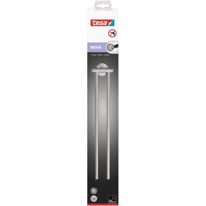 Dvouramenný otočný držák na ručníky tesa Moon má stylový vzhled nerezové oceli a nabízí dostatek prostoru pro sušení dvou ručníků různých velikostí. Ramena jsou pohyblivá a představují ideální řešení v úzkém prostoru. Povrch je voděodolný a má úpravu proti otiskům prstů.