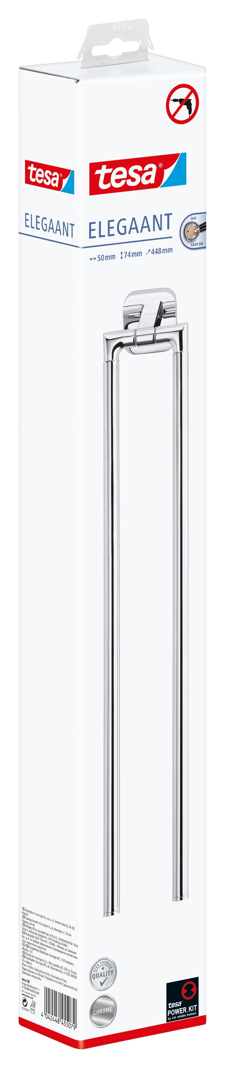 Koupelnové předměty Tesa ze série Elegaant jsou skutečným obohacením každé koupelny nebo toalety pro hosty a zaujmou kombinací skvělého vzhledu a funkčnosti. A co víc, praktické koupelnové předměty jsou nerezové. Dvouramenný a otočný držák ručníků Tesa Elegaant nabízí prostor pro 2 ručníky a bezpečně je uloží pro sušení a na požadovaném místě.