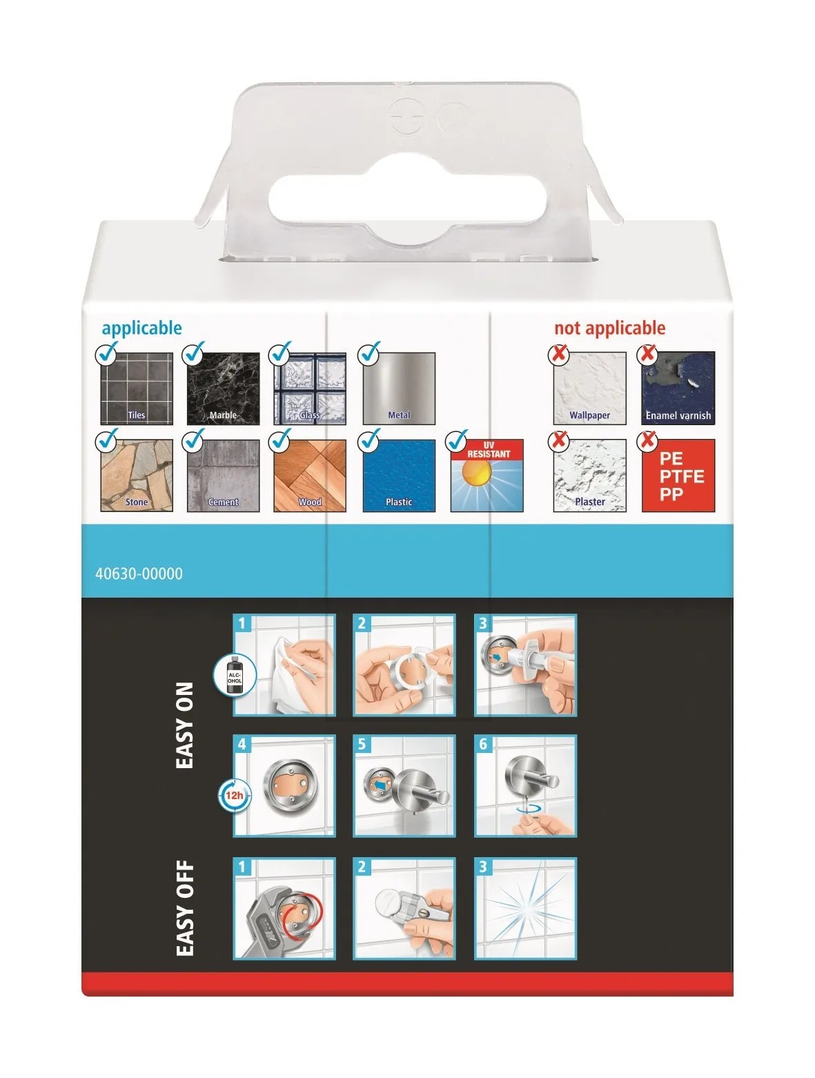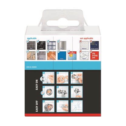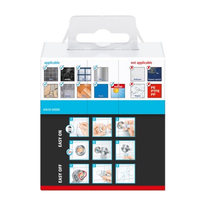 Háček vám díky svému montážnímu řešení pomocí lepidla dává naprostou svobodu, kam ho umístit. Protože nedochází k žádnému vrtání, zůstávají povrchy nepoškozené. Háček můžete kdykoli beze stopy odstranit a dokonce jej znovu použít s novým adaptérem (BK20).
