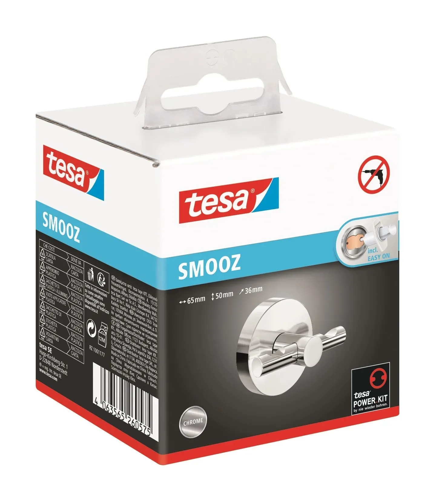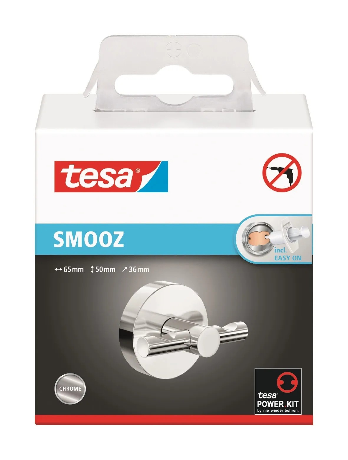 tesa Dvojitý háček na oděvy Smooz, chrom, 50 x 50 x 63 cm
