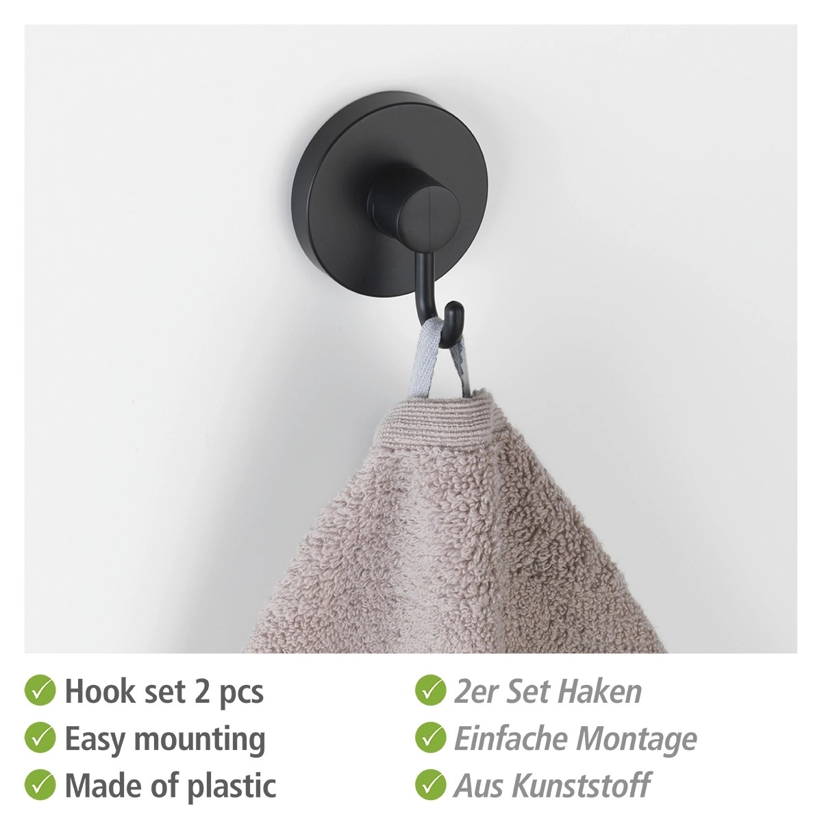 Wenko Sada háčků Vacuum-Loc 2 ks, černá 6 x 6,7 x 5 cm
