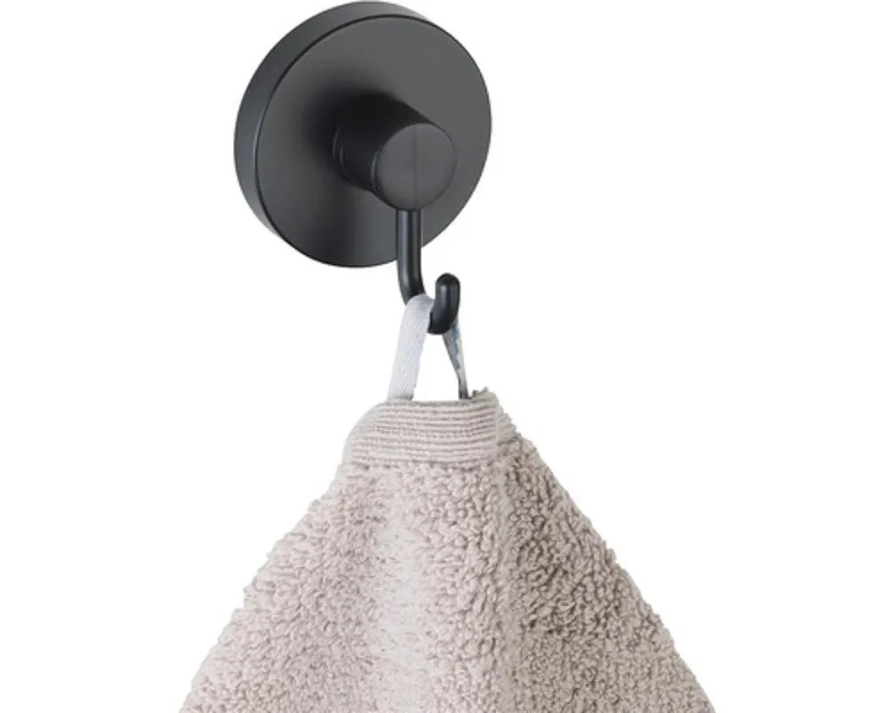 Trendy koupelnová série Vacuum-Loc Black z matně lakované oceli nabízí velký výběr prostorných nástěnných polic, háčků a koupelnových doplňků, které lze jednoduše zavěsit do adaptéru a přímo naložit. Unikátní vakuový systém, který umožňuje upevnění bez vrtání a bez použití nářadí, pevně drží na neporézních, rovných a mírně nerovných površích. Lze jej přemístit a odstranit bez zanechání stop.