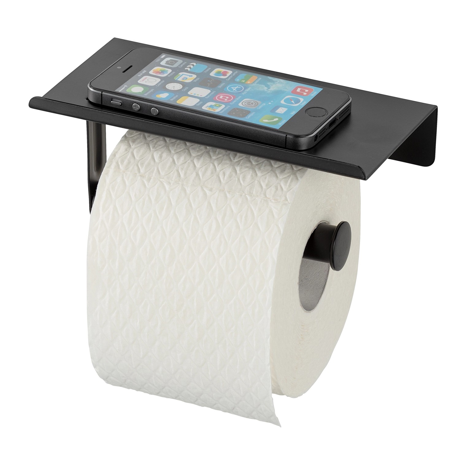Díky držáku toaletního papíru s integrovaným úložným prostorem na smartphone najdou v koupelně mobilní telefon a tablet konečně pohodlné a bezpečné místo. Pěkný držák papíru v černé barvě je vyroben z kvalitní, matné oceli a role toaletního papíru je vždy
