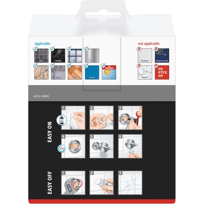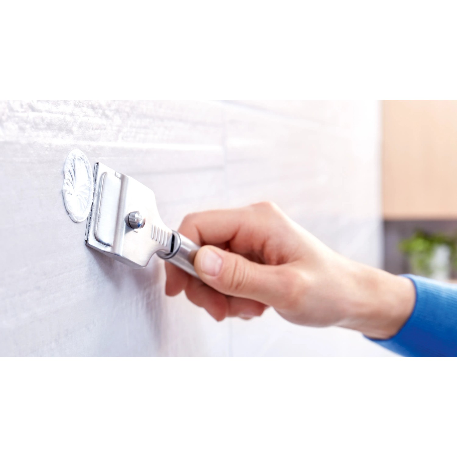 Vyvrtané otvory v dlaždicích jsou minulostí. Díky hranatému chromovanému držáku toaletního papíru tesa Ekkro se můžete obecně těmto škodám vyhnout díky technologii tesa Power.Kit, která poskytuje mimořádné adhezivní parametry. Adaptér připevněte ke stěně a naplňte lepidlo, dokud nebude vidět v menším otvoru.