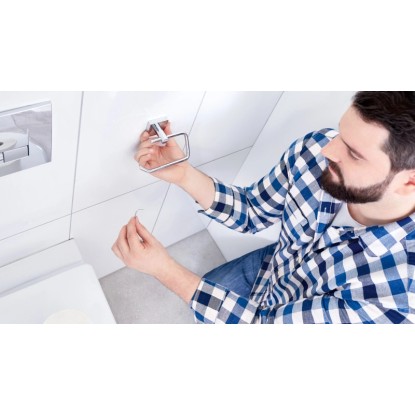Nechte lepidlo zaschnout po dobu 12 hodin, pak můžete bezpečně přišroubovat držák toaletního papíru k adaptéru. Vše potřebné je zahrnuto v balení. Tento elegantní a nadčasový doplněk do koupelny lze kdykoliv sundat a znovu použít s novým adaptérem BK20.