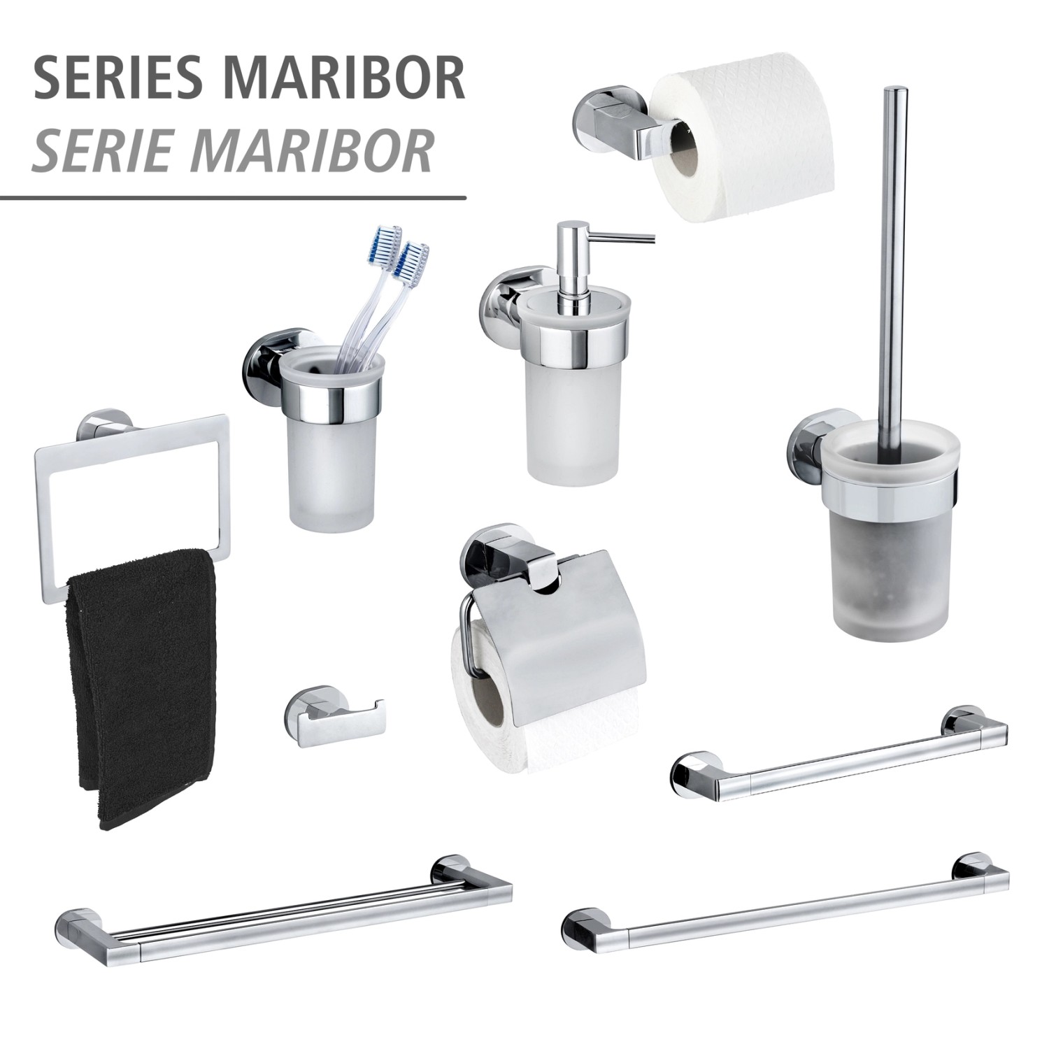 Doplňky pěkně tvarované koupelnové série Maribor mají lesklý povrch. Elegantní pomocníci do koupelny jsou vyrobeny z nerezové oceli s montážní úchytkou ze zinkového tlakového odlitku a propůjčují koupelně luxusní nádech. Doplňky lze upevnit pomocí přiloženého systému UV-Loc. Pro standardní upevnění jsou součástí dodávky šrouby a hmoždinky.