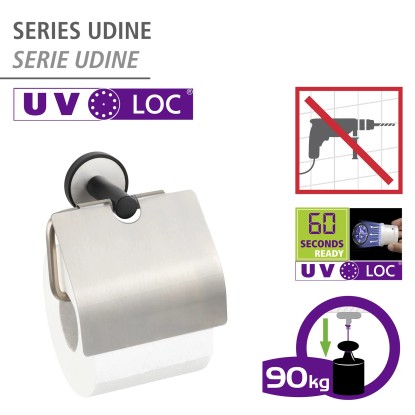 Wenko Držák toaletního papíru s víkem Udine UV-Loc, matná stříbrná