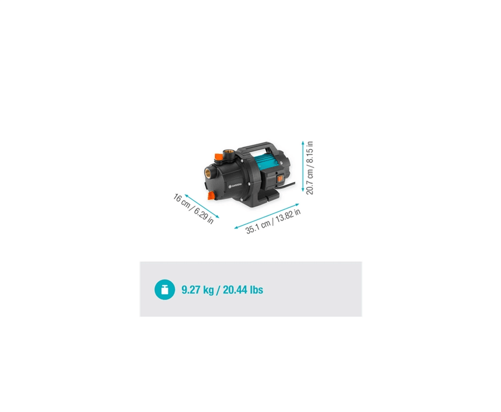 Díky ergonomicky tvarované rukojeti a lehké konstrukci nebudete mít problémy s jeho přenášením po zahradě. A co víc, v případě umístění čerpadla na zemi má velkou stabilitu. Integrovaný vypínač umožňuje pohodlné používání. Odolné mosazné šroubové vložky jsou ideální pro pevné instalace, zatímco dva dvojité adaptéry G1" v rozsahu dodávky vám umožňují snadné připojení všeho příslušenství GARDENA, jako jsou sací a zahradní hadice.
