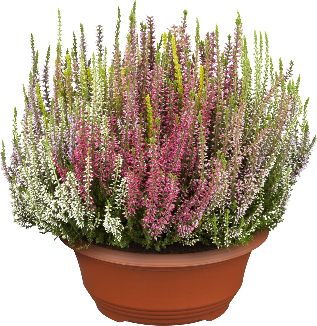 Vřes obecný Beauty Ladies - High Five (Calluna vulgaris) patří do špičkového sortimentu. Tvoří druhovou skupinu vřesu obecného, která neotvírá květní pupeny. Barvy těchto početných pupenů a listů přesto intenzivně září mnoha odstíny. Tato miska obsahuje pět různých barev poupat v jednom květináči.