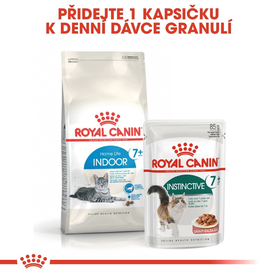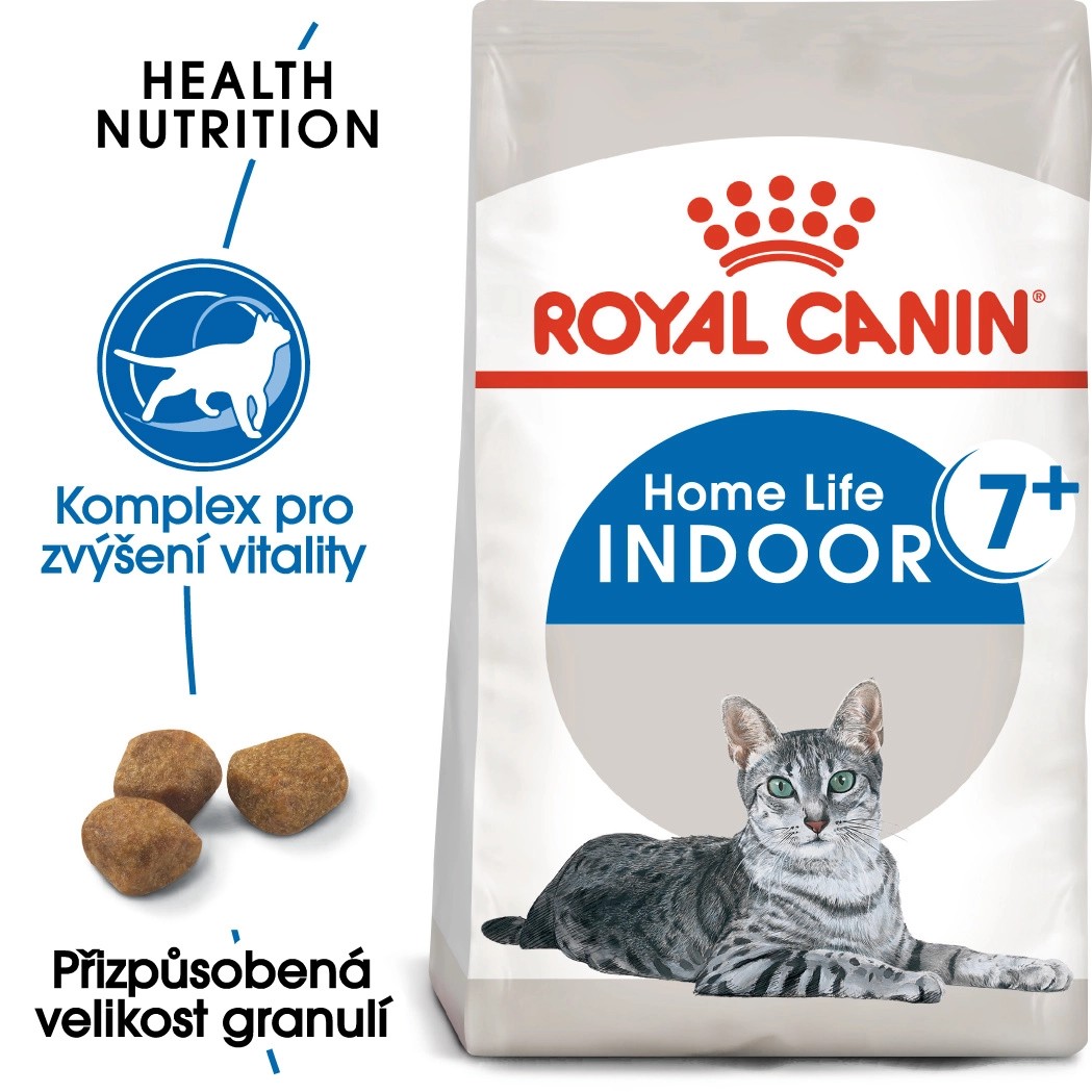 Royal Canin Indoor 7+ je kompletní superprémiové krmivo pro dospělé kočky (7 - 12 let) žijící v bytě. Dospělé domácí kočky potřebují kompletní a vyváženou stravu, která bude podporovat jejich zdraví, když budou čelit prvním známkám stárnutí. Složení krmiva Royal Canin Indoor 7+ je vytvořeno tak, aby uspokojovalo veškeré nutriční potřeby dospělých domácích koček starších 7 let.