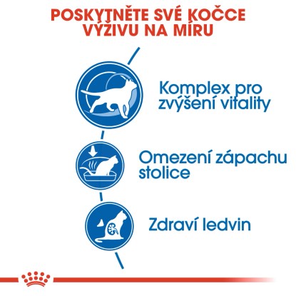 Do tohoto krmiva byly vybrány specifické bílkoviny díky svojí vysoké stravitelnosti (označované anglickou zkratkou L.I.P.). Vysoce stravitelné bílkoviny snižují nejen objem, ale také zápach stolice vaší kočky. To není skvělé jen pro vaši kočku, ale také pro vás! Navíc, díky správnému obsahu fosforu, krmivo Royal Canin Indoor 7+ podporuje ledviny a jejich zdravou funkci. Je důležité, aby vaše stárnoucí kočka dostala živiny, které podporují správnou funkci močového ústrojí. Krmivo je vytvořeno přesně pro tento úkol. Když bude mít vaše kočka zdravé močové cesty, bude první známky stárnutí snášet lépe.
