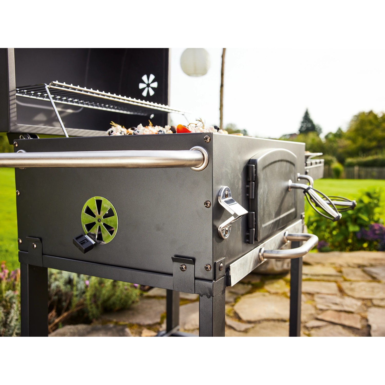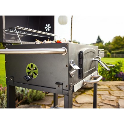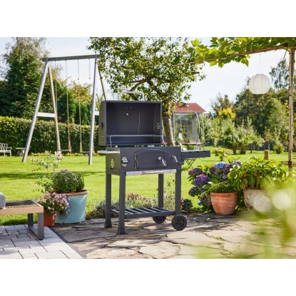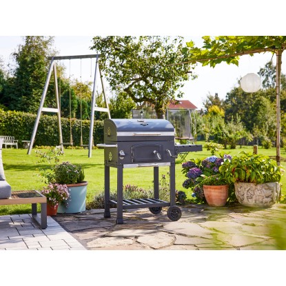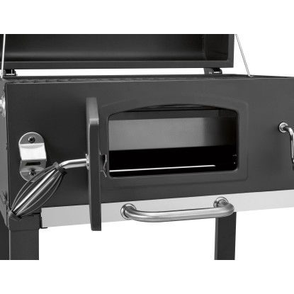 Díky víku grilu dosáhnete požadované grilovací teploty rychleji. Keramicky smaltované víko je vybaveno integrovaným teploměrem. Odolný teploměr Vám umožní snadno sledovat teplotu uvnitř vašeho grilu a regulovat teplotu uvnitř grilu pomocí regulace vzduchu na boční straně grilu. Navíc můžete nastavit žár při grilovaní pomocí výškově nastavitelné přihrádky na dřevěné uhlí ve 3 polohách. Popel padá do přihrádky/popelníku pod grilem, což velmi usnadňuje následné čištění grilu.