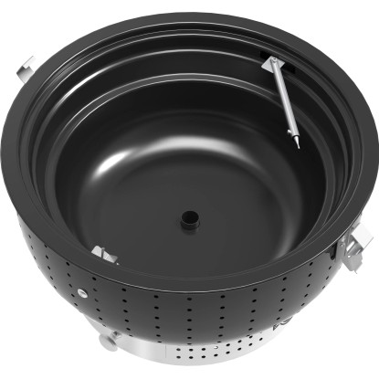 Tento gril na dřevěné uhlí vám nabídne skutečnou kvalitu. Je skvěle zpracovaný a přitom se snadno obsluhuje. Černý gril je vyroben z chromované oceli. Zlatým hřebem je promyšlená aktivní ventilace, pomocí které můžete ideálně ovládat teplotu grilování. K tomu jsou zapotřebí čtyři baterie AA, které lze zakoupit zvlášť.