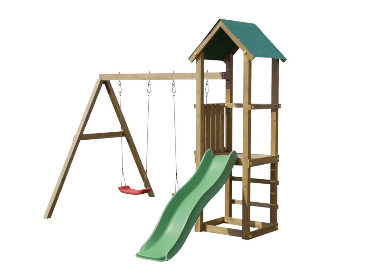 Dětské hřiště MARIMEX PLAY Basic 008 je ideálem hlavně pro menší děti, protože podesta pro skluzavku je ve výšce pouhých 90 cm. Hřiště Basic 008 splňuje normy EN 71 Bezpečnosti hraček. Dřevěný materiál použitý na dětském hřišti je opracován tak, aby snižoval riziko zranění dětí. Zároveň je impregnován na dlouhou životnost a vysokou odolnost celého hřiště. Dětská hřiště Marimex Play Basic jsou oproti klasickým Marimex Play rozměrově menší. Disponují impregnací KDI, tedy tzv. "zelenou impregnací". Vybavení: skluzavka 1,75 m s integrovanou přípojkou na vodu (barva zelená,obrázek na e-shopu je ilustrační, odstín barvy skluzavky se může nepatrně lišit), 2x houpací sedátko s provazy a upevněním (červené), plátěná střecha kotvy upevňujících sestavu k zemi, plastové kryty šroubů, sada nářadí pro sestavení.