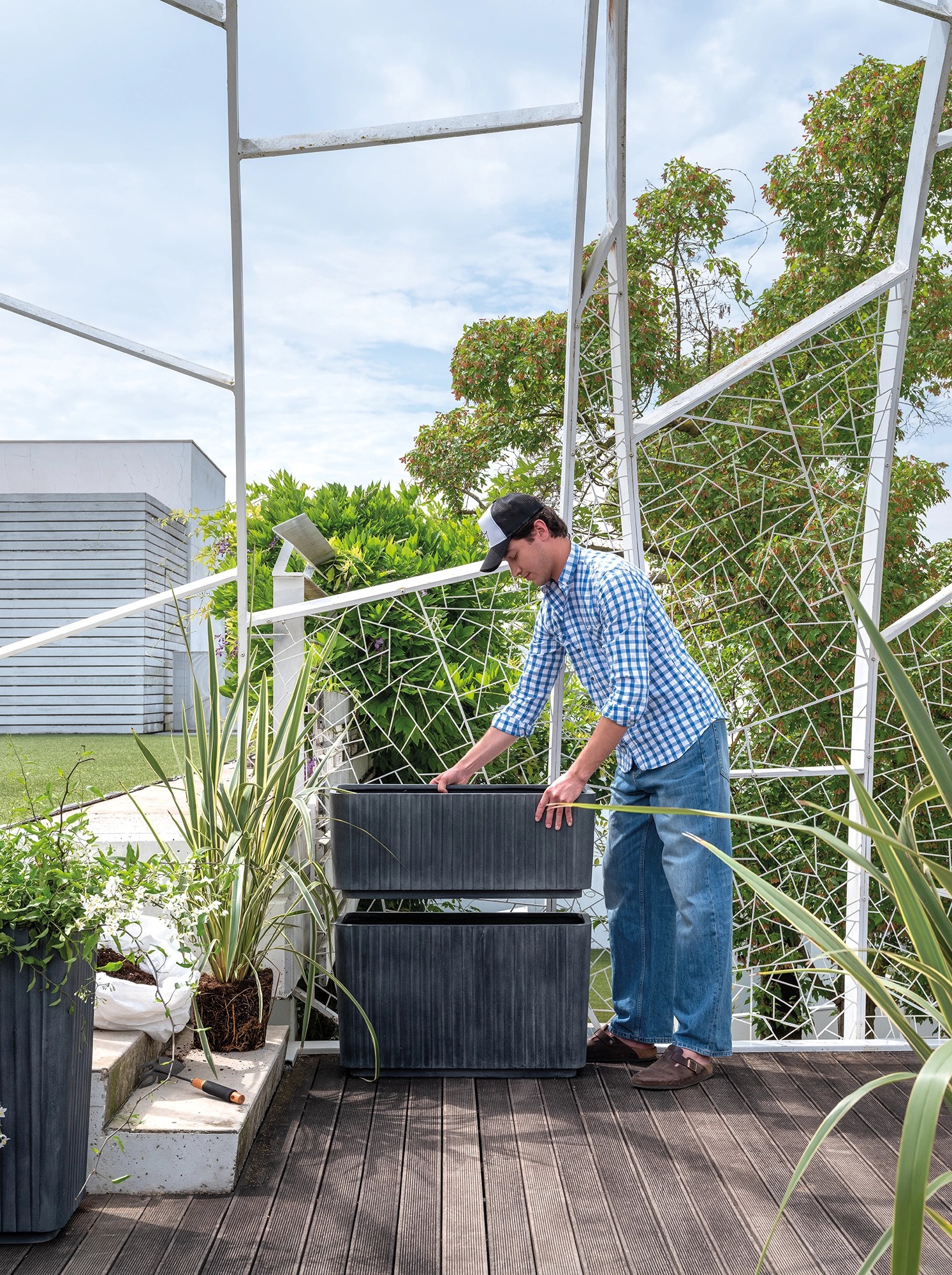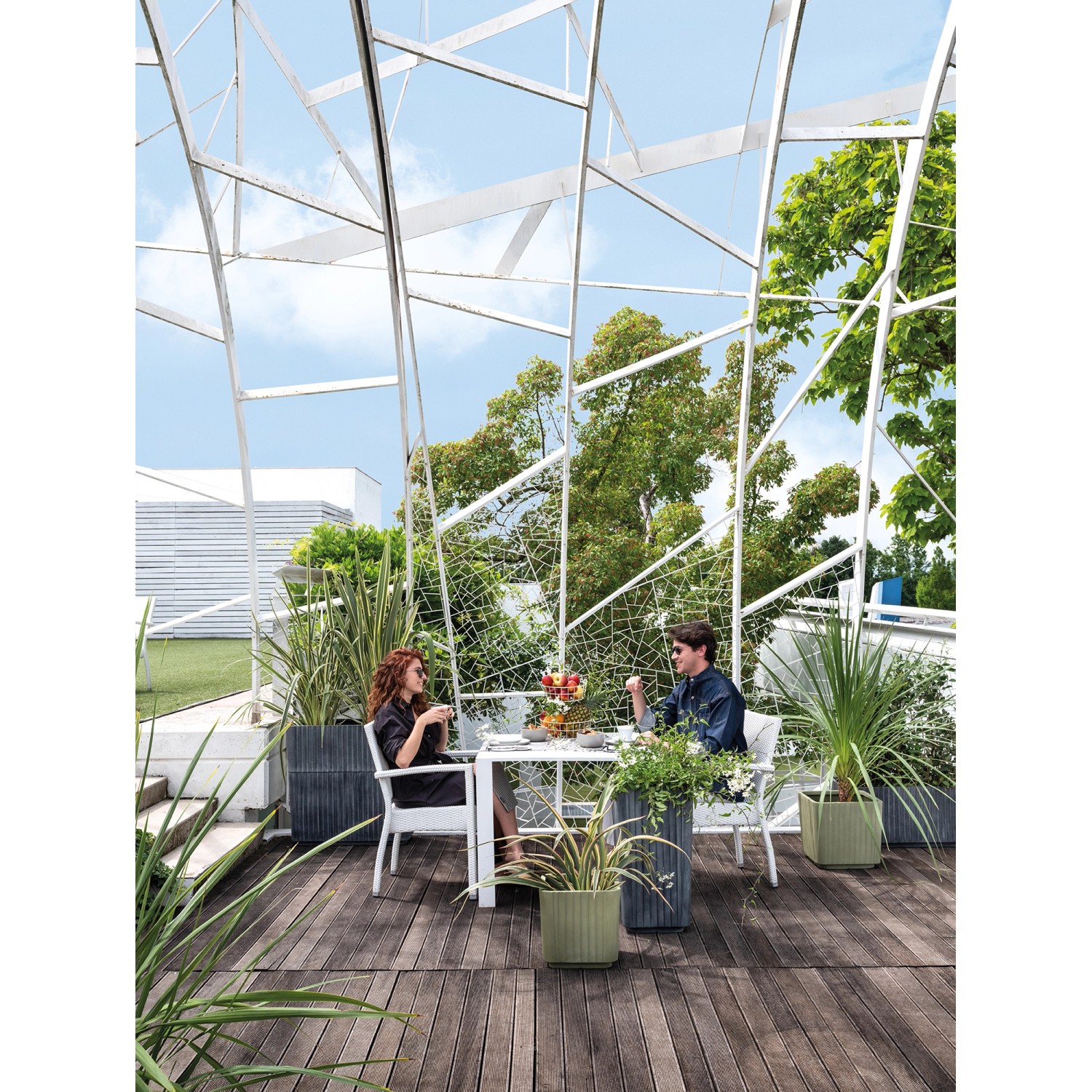 Květináče série LINK výrobce Deroma kombinují moderní eleganci s vzhledem inspirovanou přírodou. Sofistikovaná kombinace materiálů dodává květináčům jedinečný povrch, který stylově zdůrazňuje každou rostlinu. Ať už na terase, balkonu nebo v zahradě, elegantní květináče lze dokonale začlenit do jakéhokoli zahradního konceptu. Jejich nadčasový design a harmonický tvar vytvářejí dekorativní aranžmá. Díky inovativnímu složení materiálu je květináč obzvláště robustní, mrazuvzdorný, ale také výrazně lehčí než běžné terakotové modely. K dispozici v antracitové nebo olivové barvě.