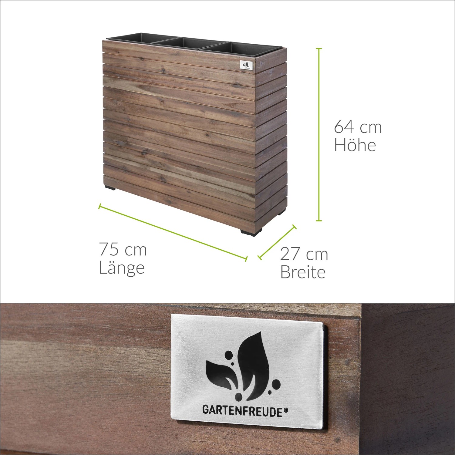 Gartenfreude Květináč Antigua je ideálním způsobem, jak zkrášlit svůj interiér i venkovní prostory. Květináče jsou vyrobeny z vysoce kvalitního akáciového dřeva, které je přírodním a udržitelným materiálem a do vašeho okolí vnese středomořskou atmosféru.
