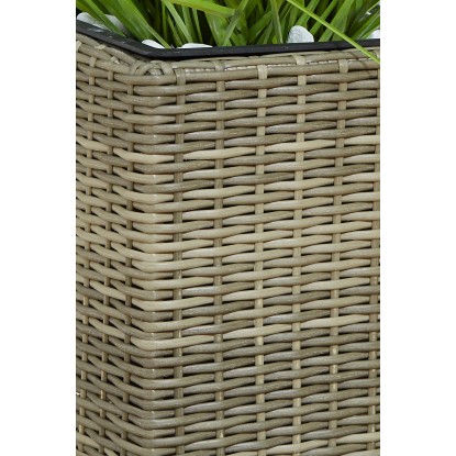Polyratanový květináč je určen pro vnitřní i venkovní použití a vnese do domu, na terasu nebo zahradu dekorativní prvek. Květináč je vyroben z kvalitního polyetylenového výpletu opleteného přes hliníkový rám, který je odolný proti korozi. Výplet odolává UV záření a vysokým teplotám, má dlouhou životnost a snadno se udržuje.