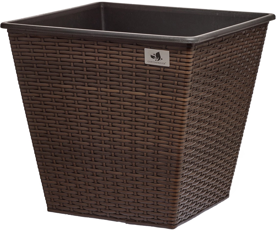 Gartenfreude Sada květináčů 2 ks, polyratan, tmavě hnědá, 41,5 x 41,5 cm