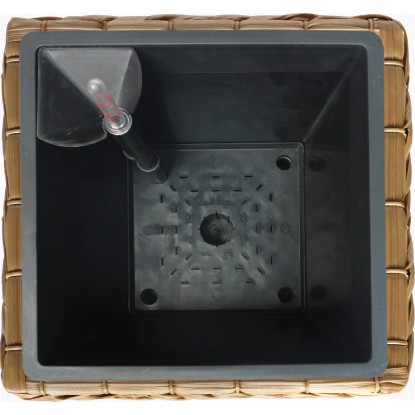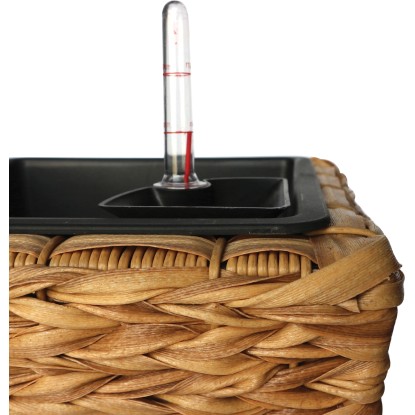 Kónický tvar květináče se směrem nahoru rozšiřuje a díky tomu poskytuje rostlinám ideální podmínky pro přirozený růst. Dekorativní vyplétaný povrch přírodní barvy se hodí k zařízení v mnoha stylech nebo mnoha zahradním konceptům, takže lze květináč použít univerzálně. Květináč je vyrobený z polyratanu, který se vyznačuje přírodním vzhledem, nízkou hmotností a snadnou údržbou. Péči o květiny zajišťuje integrovaný zavlažovací systém s ukazatelem stavu vody pro optimální zásobení vodou. Aby nedocházelo k přemokření, doporučuje se květináč používat ve vnitřních prostorech nebo zastřešených venkovních prostorech. Výškově nastavitelné nožičky slouží k vyrovnání nerovností podkladu. Květináč je odolný vůči povětrnostním vlivům a mrazuvzdorný do -10 °C, takže ho můžete v zimě umístit venku, pokud zabráníte přemokření. Díky výšce 27,5 cm a půdorysu 29 cm x 29 cm (Š x H) se hodí rovněž do menších prostor.