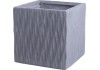 Krychlový tvar se stejně dlouhými stranami se hodí k jednoduchému, hranatému designu. Povrch se vyznačuje hezkou strukturou, která působí jako vydlabaná. Materiál Fibreclay navozuje dojem, že se jedná o kámen. Ve skutečnosti je světle šedý materiál mnohem lehčí a také obzvláště nerozbitný. Do -10 °C mrazuvzdorná a vůči povětrnostním vlivům odolná nádoba může zůstat venku po celý rok. Přitom se musí dbát na to, aby nedošlo k přemokření. Praktický otvor ve dně umožňuje odtékání přebytečné zálivky. Takže nemůže díky přebytečné vodě dojít k poškození kořenů. Rozměry květináče činí 50 cm x 50 cm x 50 cm.