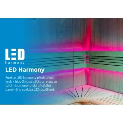 - Funkce LED harmony představuje krok k hlubšímu prožitku z relaxace užitím tlumeného uklidňujícího barevného spektra LED osvětlení.