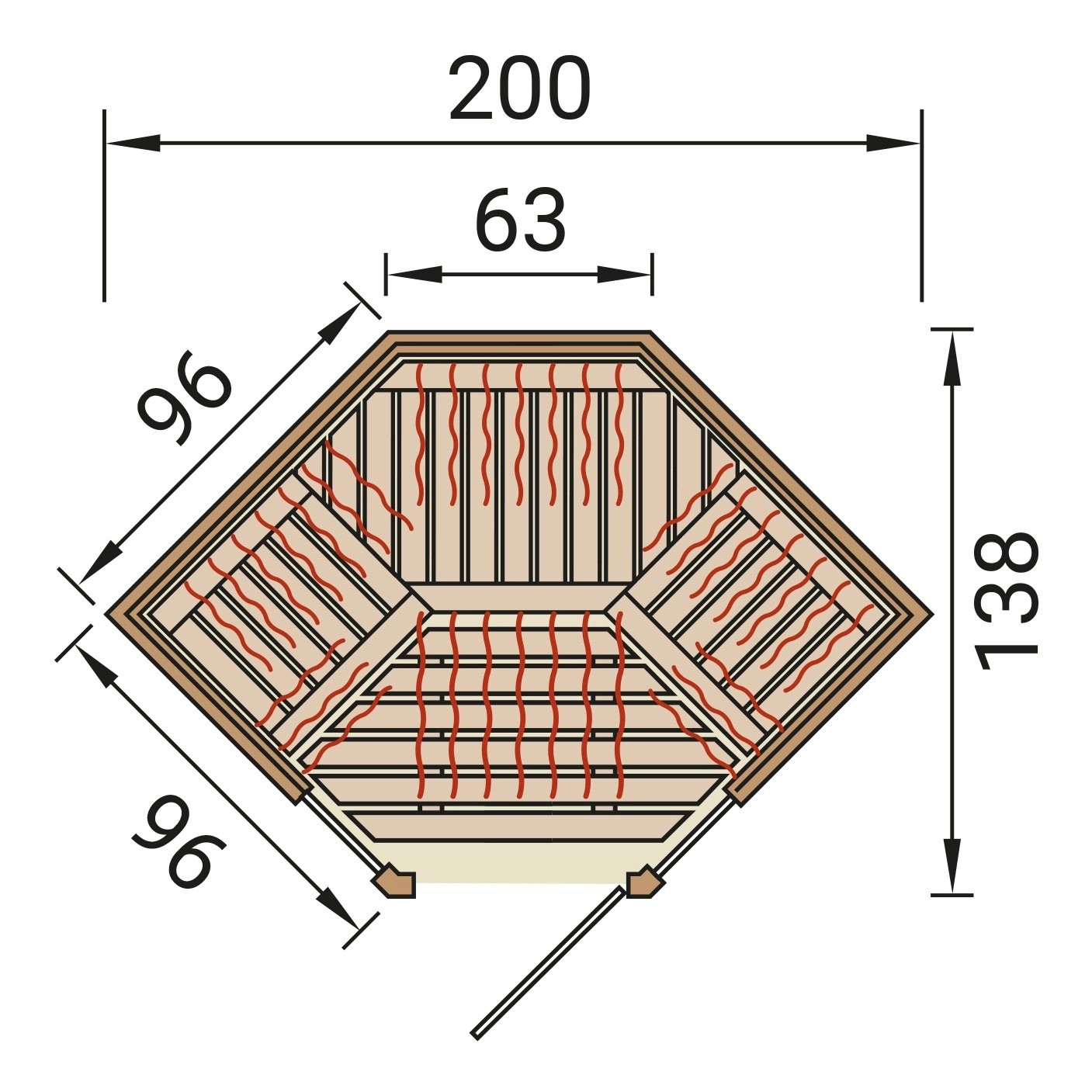 - Vnější rozměry (V x Š x H): 190 cm x 200 cm x 138 cm