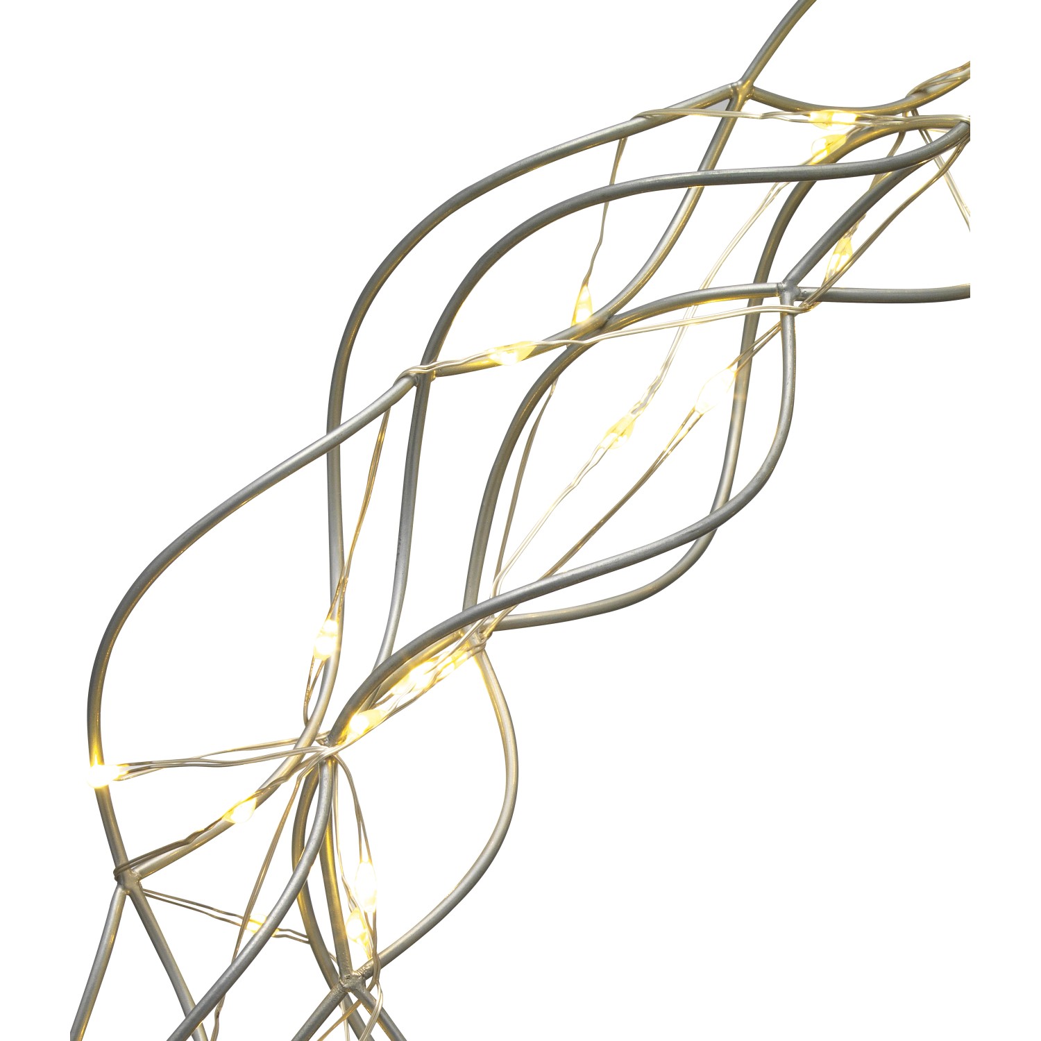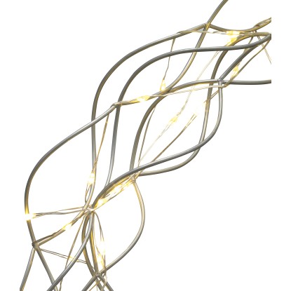 Stylovou výzdobu vašeho domova zajistí elegantní LED světelný kruh. Dekorativní prvek můžete zavěsit uvnitř za okno nebo umístit individuálně v místnosti, kde zajistí příjemnou světelnou atmosféru. Tvoří ho kulatý, vlnitý věnec z několik vzájemně propletených lanek. Dekoraci doplňuje filigránský, stříbrný světelný řetěz z měděného drátu, který jí dodává atraktivní světelné efekty. Věnec je vyrobený z lakovaného železa, které se vyznačuje stabilitou a dlouhou životností.