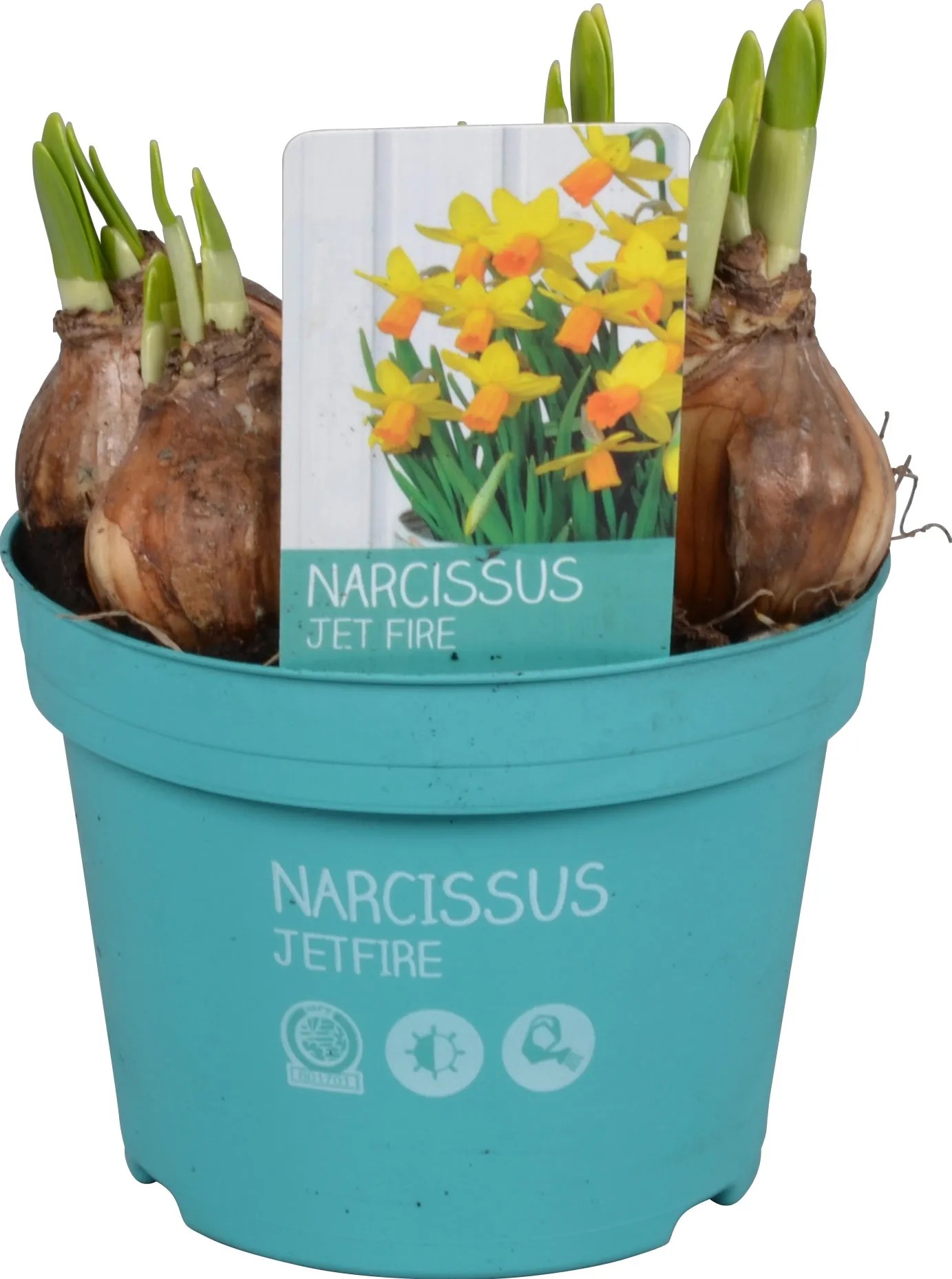 Narcis "Jetfire Diamond Collection" (Narcissus) je cibulovina, která se vyznačuje svými odvrácenými okvětními lístky a vykouzlí tak extravagantní atmosféru v začínajícím předjaří. Těší se vzrůstající oblibě a zůstává kompaktní. Když žlutooranžové květy odkvetou, lze jej vysadit do zahrady. Tam bude v příštím roce opět kvést a v průběhu let bude vytvářet stále větší porost.