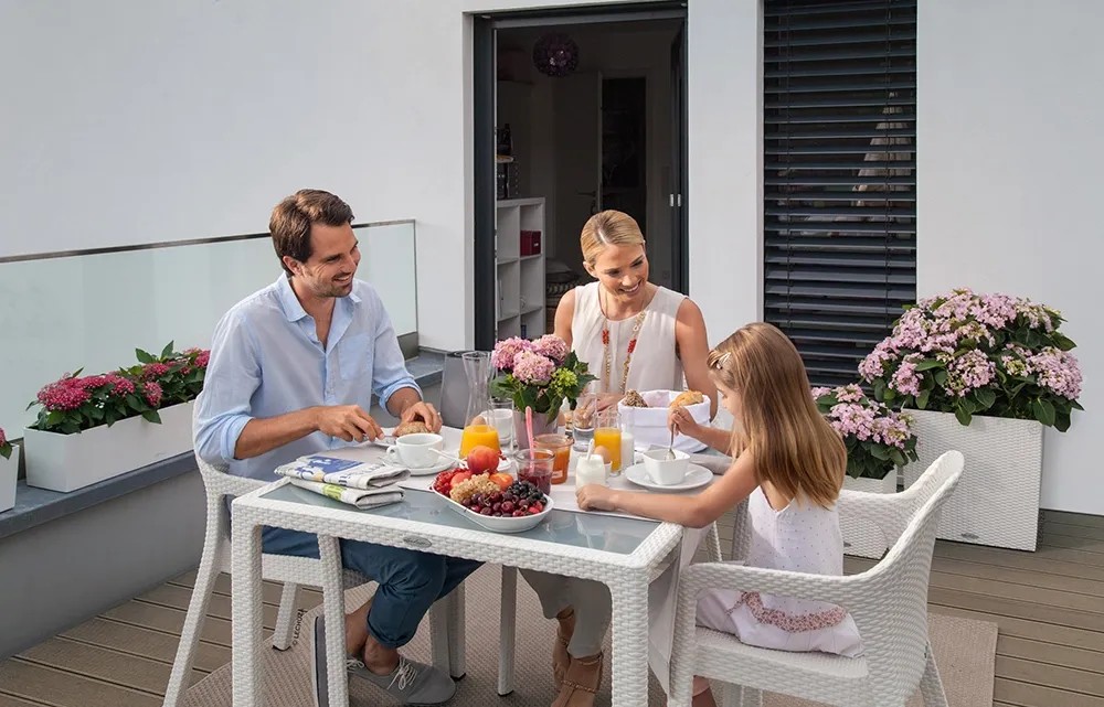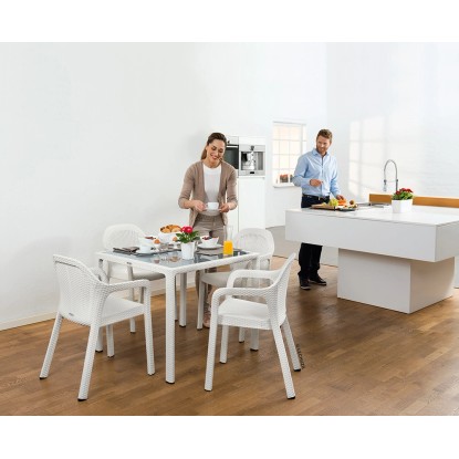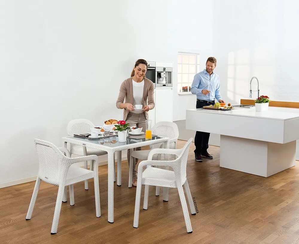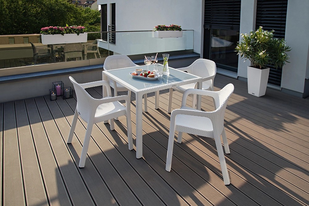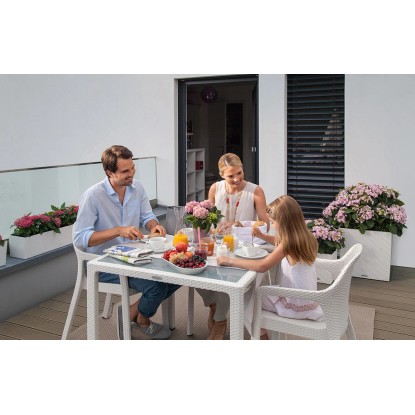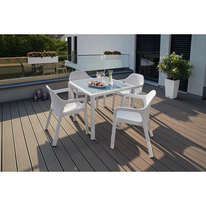 Lechuza Zahradní jídelní stůl se skleněnou deskou, bílá, 90 x 90 cm