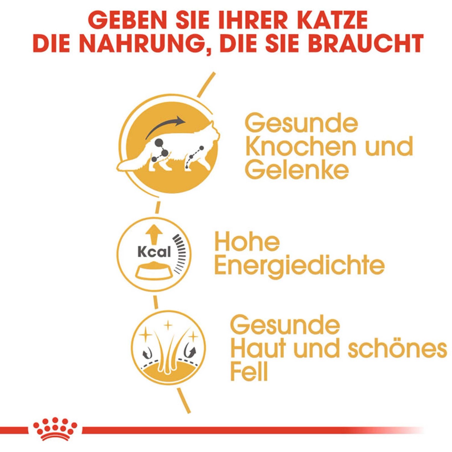 Kapsička také obsahuje vysokou koncentraci energie, aby vaše kočka měla sílu na všechna svoje dobrodružství každý den. Je obohaceno o taurin a omega-3 mastné kyseliny EPA a DHA, které podporují správnou funkci srdce. EPA a DHA také velmi prospívají kostem a kloubům. Kvůli velikosti mainské mývalí kočky se musí věnovat speciální pozornost stavu jejích kloubů a celkového zdraví.