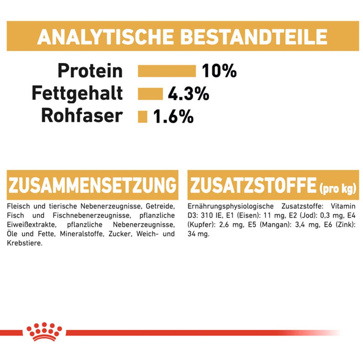 Mainská mývalí je tou největší domestikovanou kočkou na světě, ale jejich majitelé vědí, že jejich velká těla jsou osedlaná mírnou a velmi milou povahou. Jejich velká těla jsou zároveň velkou zátěží pro klouby. Kvůli svojí kostře a svalnatému tělu může mainská mývalí kočka vážit až třikrát tolik co běžná kočka. Složení kapsičky s paštikou Royal Canin Maine Coon Adult in Gravy je vytvořeno tak, aby uspokojovalo veškeré nutriční potřeby tohoto plemena. Můžete si být jistí, že nutriční potřeby vaší mainské mývalí kočky jsou pro nás stejně důležité jako pro vás.